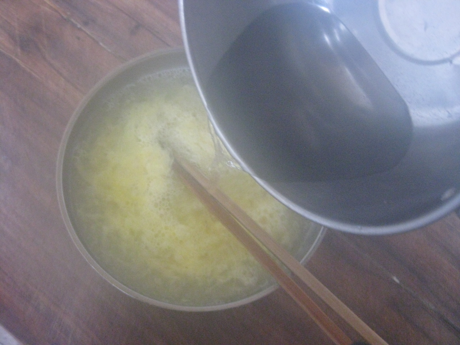 首先,我用那坚硬而又脆弱的鸡蛋壳碰向碗沿,然后,我用干净的小手将鸡蛋从破裂的地方瓣开,然后让蛋清和蛋黄搅拌在一起。第二步,用筷子进行搅拌,搅得程度就是让蛋清和蛋黄搅拌在一起。第三步,烧水,我先去柴房揽一些柴火,放进锅炉里面,点火,我用火柴一点,然后往近一扔。然后上面再放木头棍子,可是,一定要注意安全,也不可着急,心急吃不了热豆腐。熊熊大火再烧,我就在幻想,我也在怀疑,我真的可以像妈妈那样做好吗?不一会水好了,我带着怀疑以边缴一边将热水往里边倒,然后就做好了!