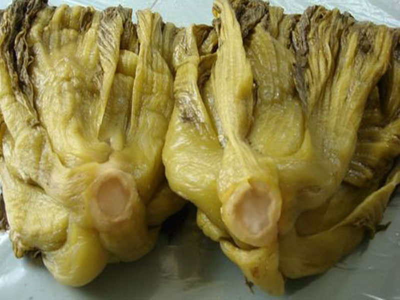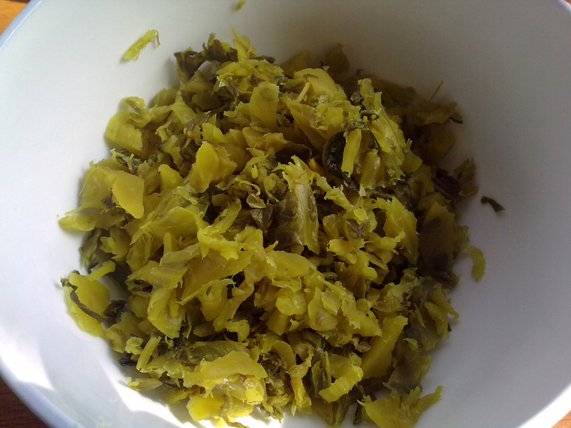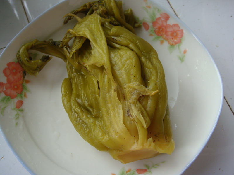 传说,在古代有几个穷人,他们把仅有的几棵白菜放在缸里,留着家里来客人吃,可是老天爷没有可怜他们,他们的缸不知什么时候破了,雨水流进了缸里。当他们想起吃这些美食时,这些白菜不知变了色也变了味,无奈之下他们就和猪肉一起炖着吃。这一炖不要紧,锅里飘出了扑鼻的香味。于是他们便疯狂的吃了起来,于是酸菜这个"宝贝"就从此出了名,它的来由是不是很有趣。