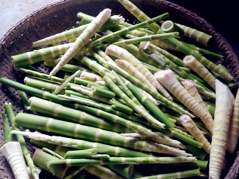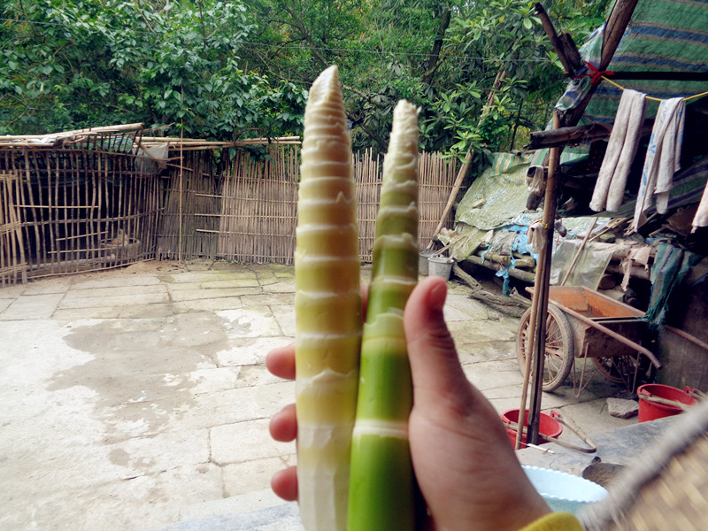 一个笋子长得白白的,另一个则是绿色的,那一条条白色的痕迹,这就是我努力了一个下午的结果,此时的我真想说:"粒粒皆辛苦!"