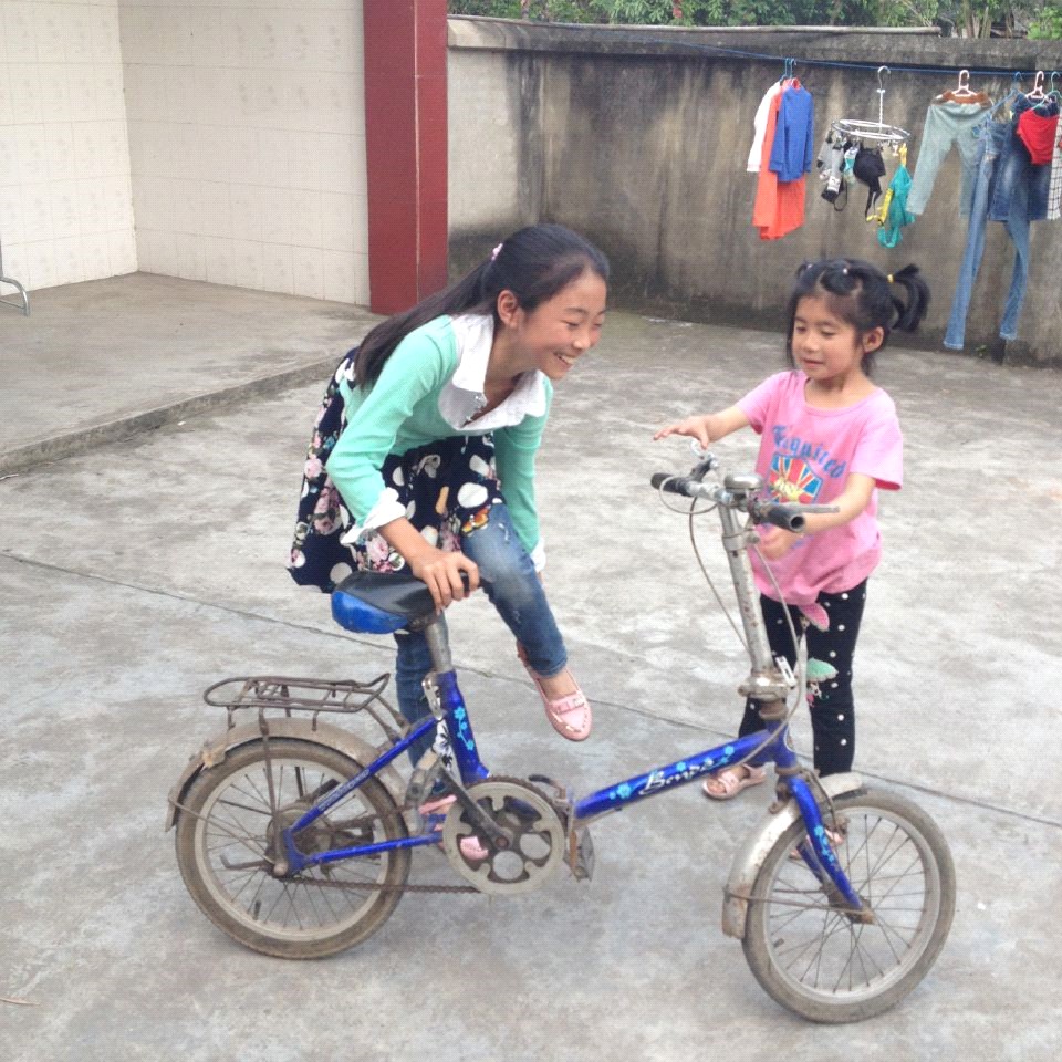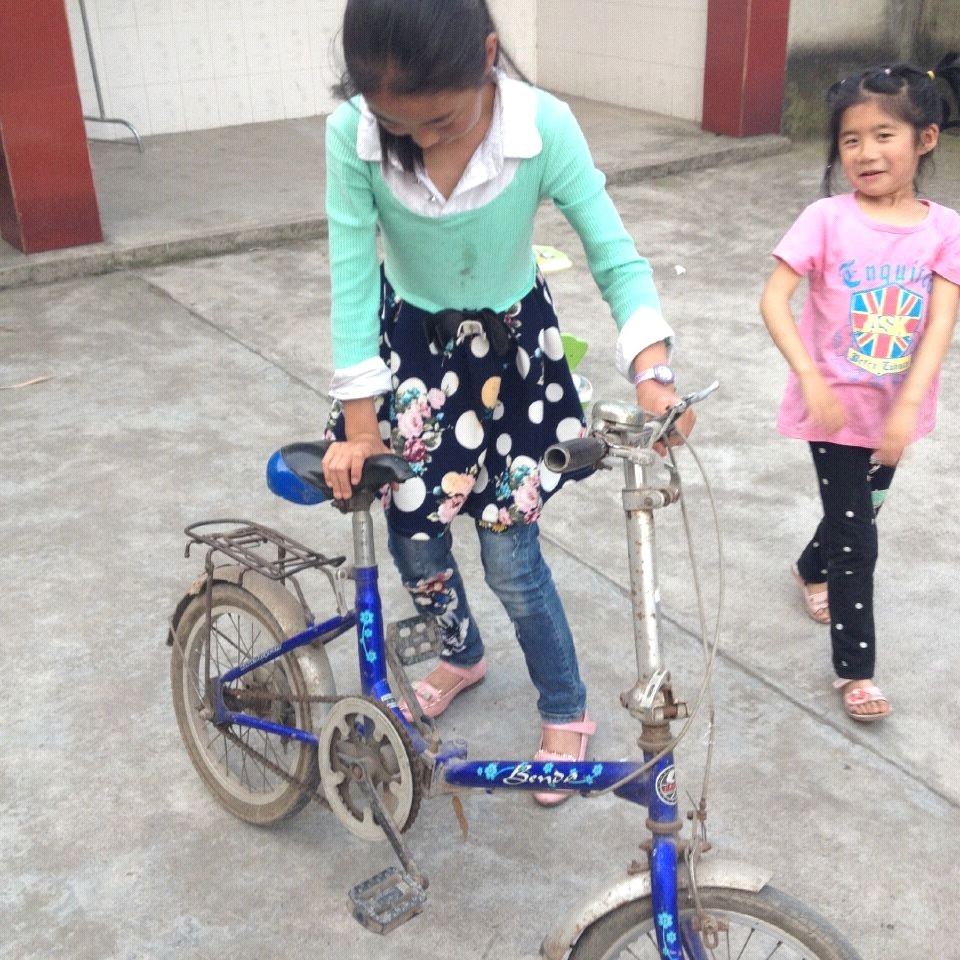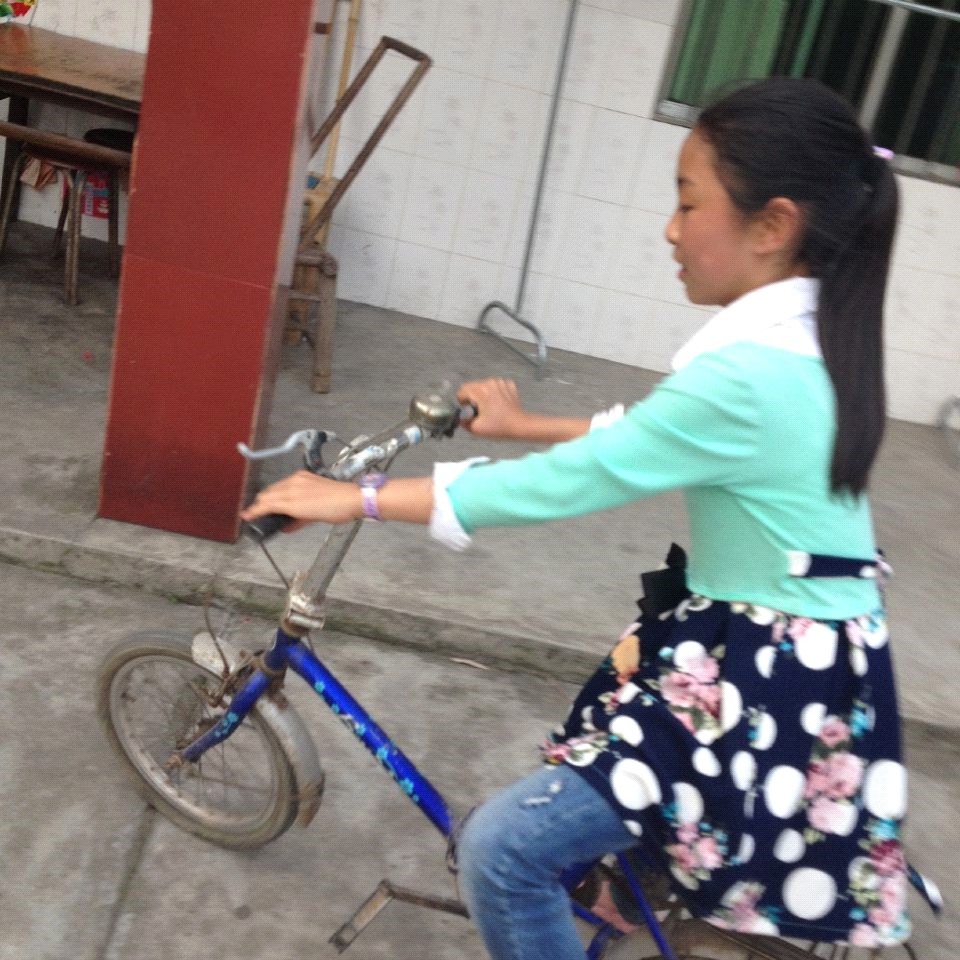 姐姐把车停好,坐在后座上说:"来吧,开始吧!"她叫我坐驾驶櫈,坐稳后,再把车掌平,脚踩在脚踏板上。"好的,走起来。"她叫我把龙头的方向控制好,同时脚也要动起来。"左脚踩到底,右脚再踩到底,这样就是一圈了。你现在只踩半圈就可以了,关键是把方向控制好。" 就这样,丹丹姐坐在后座上,指挥我在院子里跑了一圈又一圈。还别说,我还学得真快。 过了好一阵,丹丹姐说:"你现在试着踩踩满圈看看。"好!很好!继续!"我两脚不停地踩着,两眼盯着前面,我忽然看见丹丹姐不在后座上而是立在一旁。"姐,你怎么下去了呀?"话音刚落,只听到"啪"的一声,我栽倒在地,姐赶快跑过来扶起我说:"没摔疼吧。"我试了试:"没事。"丹丹姐把车也扶了起来说:"我们继续吧!"我懒懒的回答道:"嗯"。姐又说:"别怕!失败是成功之母!" 丹丹姐又开始指挥起来,这回她没有坐后座了,而是扶着后架跟在车后跑:"控制好龙头的方向,均匀地踩踏脚板。" 就这样,我照着丹丹姐说的方法来骑,半天的功夫,我就可以自由地直行和转弯了。
