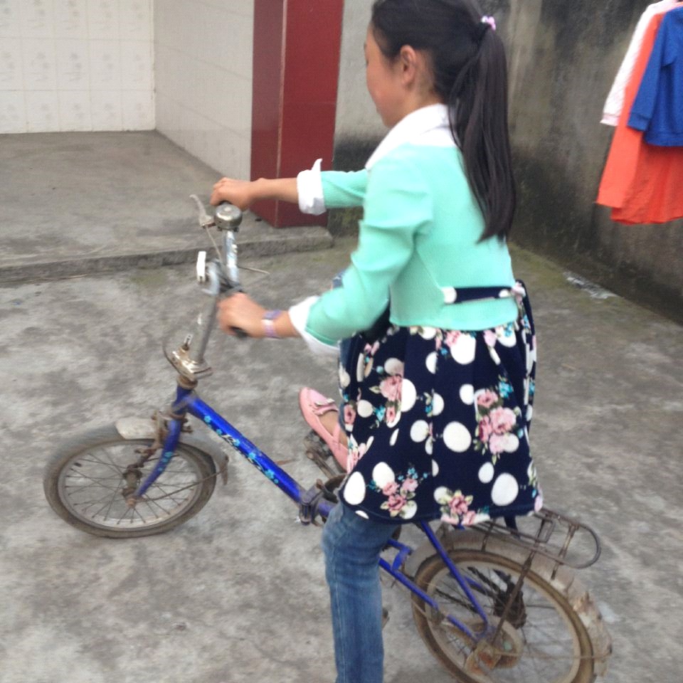 第二天,我早早就起来了,吃过早饭,我便来到了丹丹姐家,我在门口大声的叫喊着:"丹丹姐!丹丹姐!"我叫了几声,丹丹姐的奶奶走了出来说:"丹丹在家。"我说:"我是来找丹丹姐,让她教我骑自行车的。"那你进来吧。"奶奶说道。 我随着奶奶一起进入了她家院子。看着丹丹姐家的大院子,我想:这么大的院子,不用去外面学了。我正美滋滋的想着,一阵丁咛咛的响声传来,我抬头一看,原来是丹丹姐骑着小巧又可爱的自行车从屋里直接下到院子里了。多神气啊!