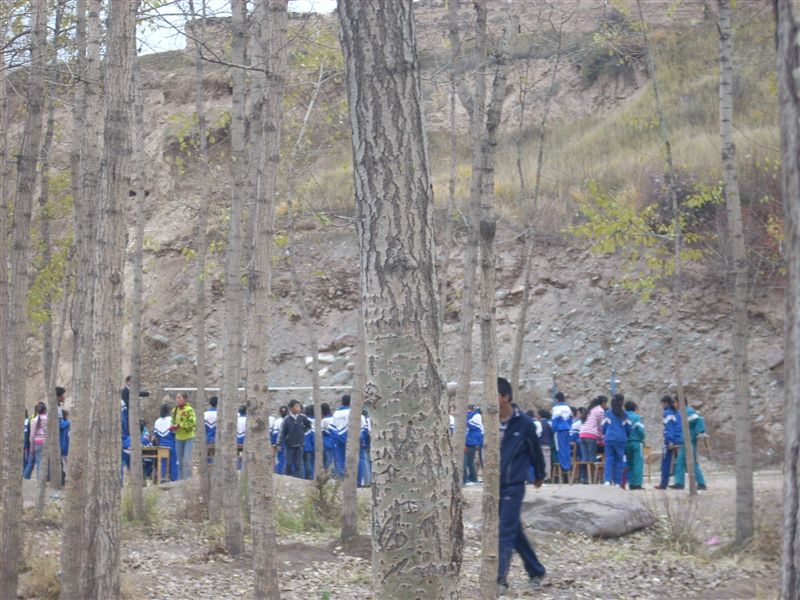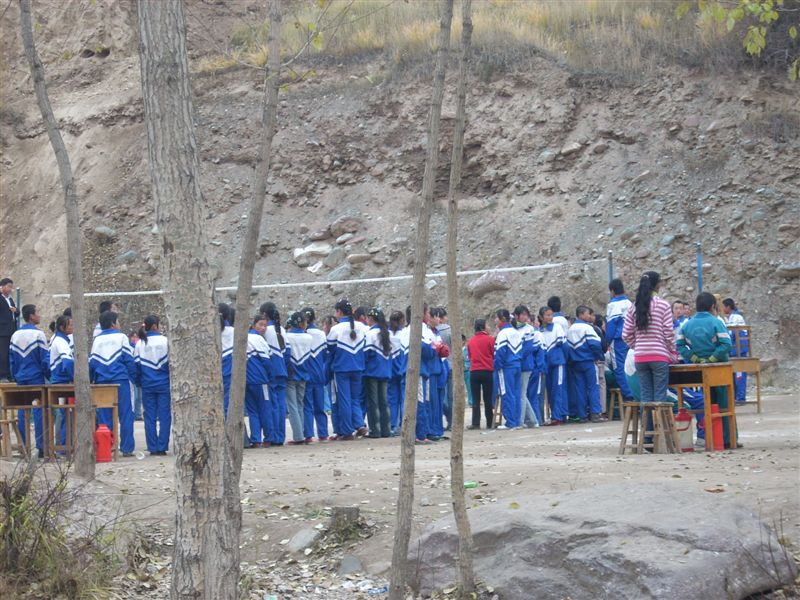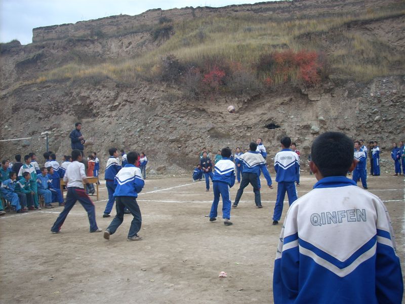 再看篮球场上,又是另一番景致,这是九年级的女篮比赛,赛场上球员们围在一起打得很紧张,旁边的同学也为他们呐喊助威,声音震耳欲聋。