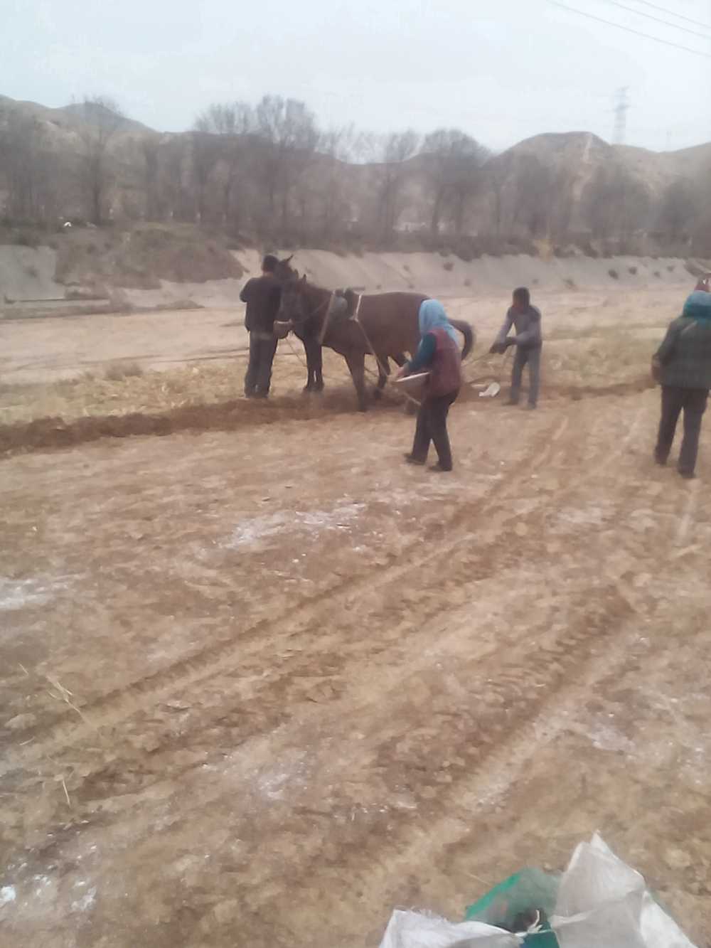 首先,妈妈往地里撒化肥。当妈妈洒完化肥之后,爸爸和爷爷就开始准备耕地。爸爸牵着骡子耕了一行地,我们就在爸爸后面跟着,往耕下的那一行地里放种子。爸爸掉头回去的时候,就把把那些种子都给土盖住了。爸爸累了之后,爷爷就去替换爸爸。因为我们人数很少,所以爸爸就叫了几个村里的人来帮忙。