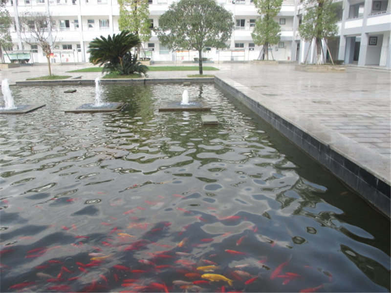 当年旗台还在前操场,小小的一方,所有有都挤在一起升国旗。现在教学楼前是水池鱼塘,没事还可以去喂喂鱼。我们还在一心学习。