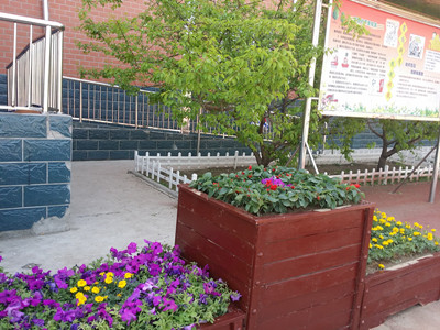 走进学校大门。第一眼看到的是宽阔的操场。操场大概长有100米,许多小朋友在操场上快乐地玩耍,给校园增添了许多欢乐。操场周围有许多花坛和大树,夏天的时候,绿树成荫,五颜六色的鲜花引来了许多蜜蜂和蝴蝶。