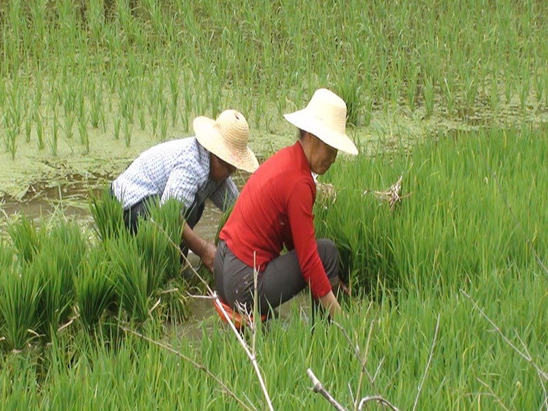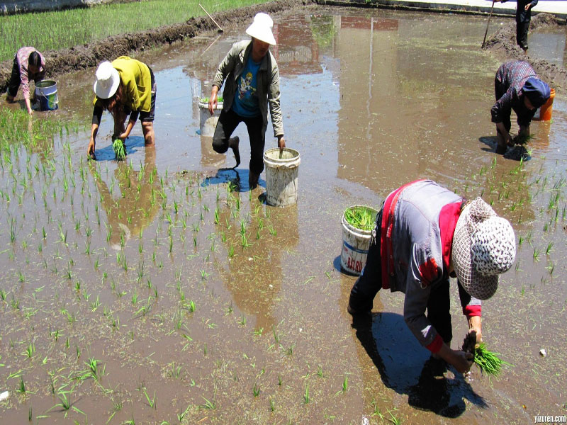 在栽秧之前首先要先将秧从地里拔出来然后才一苗一苗的插进水田里,早上奶奶叫来了村子里的人来帮我们栽秧拔秧,奶奶和隔壁大婶就负责拔秧爷爷和村子其他人就栽秧。