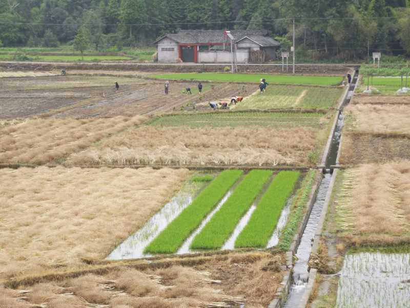 我当然就更不能停了,于是我咬咬牙,一干就是两个多小时。此时,夕阳的余晖不断撒向地平线,回望我们今天的战绩,发现我们已经弄完大半个田地,剩下的只得明天再弄了。