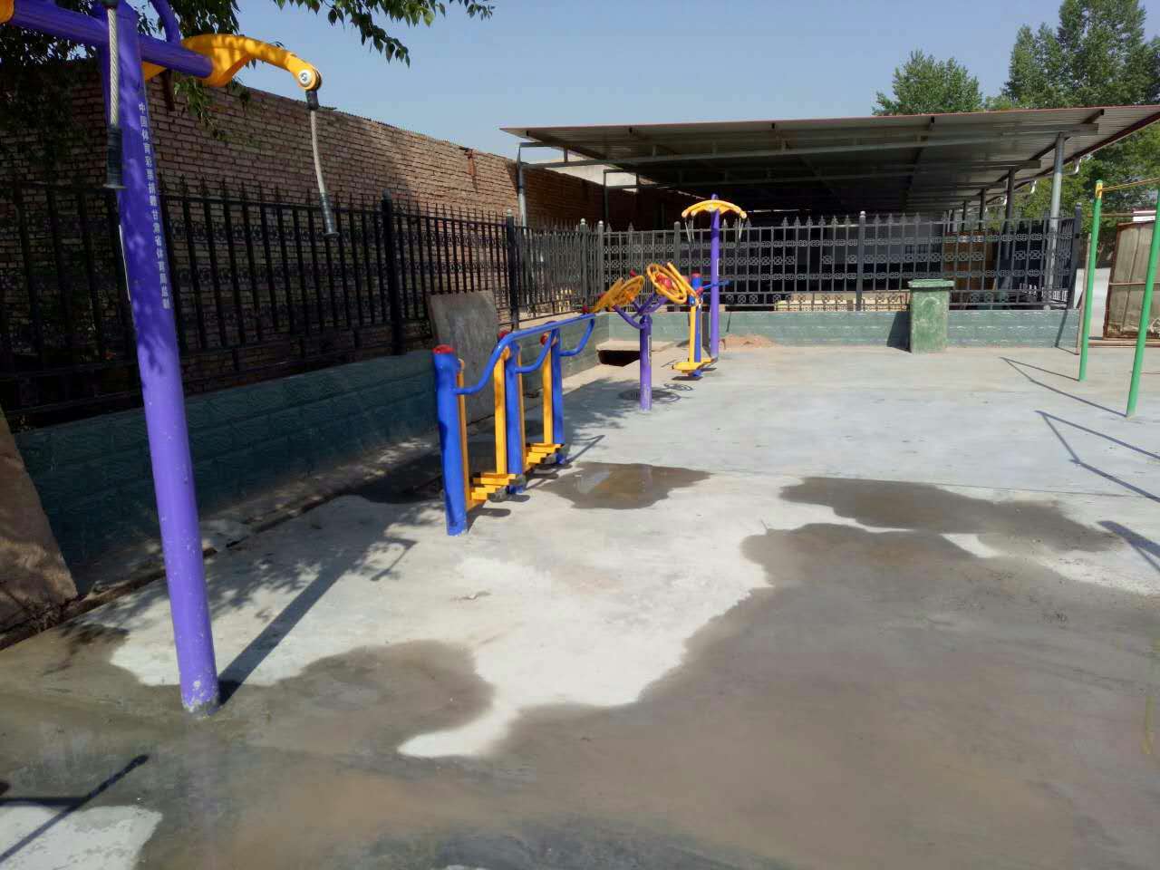 我们学校的操场硬化好了,学校又在 操场的南边安装了一些健身器材。