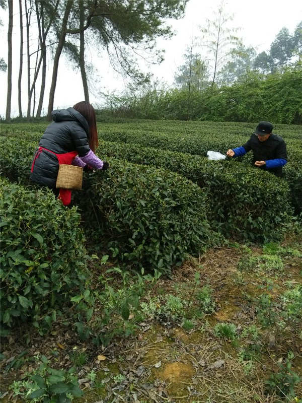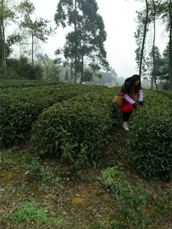 跟随着妈妈来到茶地旁,看到那绿油油的一片,心情也顿时畅快了起来。妈妈说:"快摘吧,不然一会儿太阳出来了,你又要受不了了。"于是,我两手并用,飞快地抓起茶叶,当然,摘茶叶也是要技巧的,不能摘得太长,太长了就卖不出好价钱,也不能将摘得的茶叶放在阳光下,会使茶叶变得焦黄不好看,收茶的人就会嫌弃,摘完茶叶,我的手指盖都被茶树叶染黑了。不过还好最后卖了个好价钱。