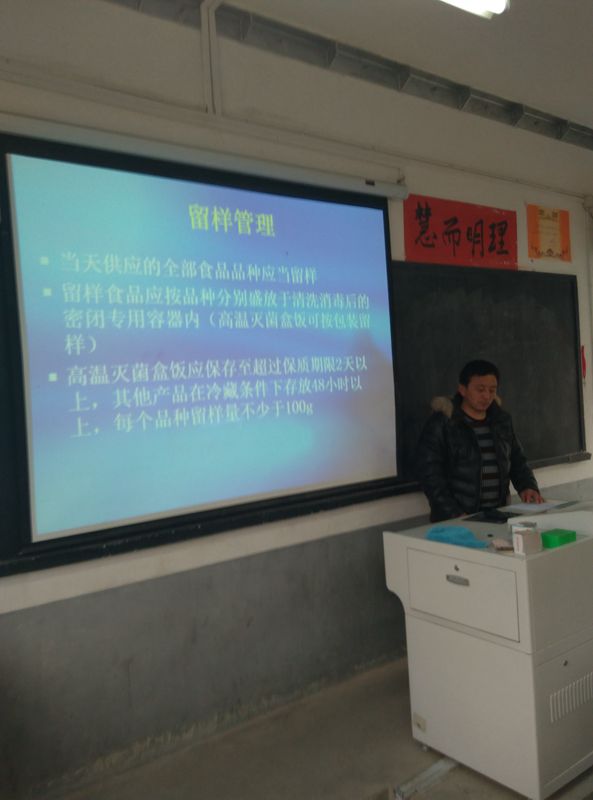 培训会上,学校总务处的宋军主任重点对《食品安全法》、《食品安全法实施条例》、《餐饮服务食品安全监督管理办法》、《餐饮服务食品安全操作规范》以及食物中毒预防及应急处置措施等内容进行详细讲解。