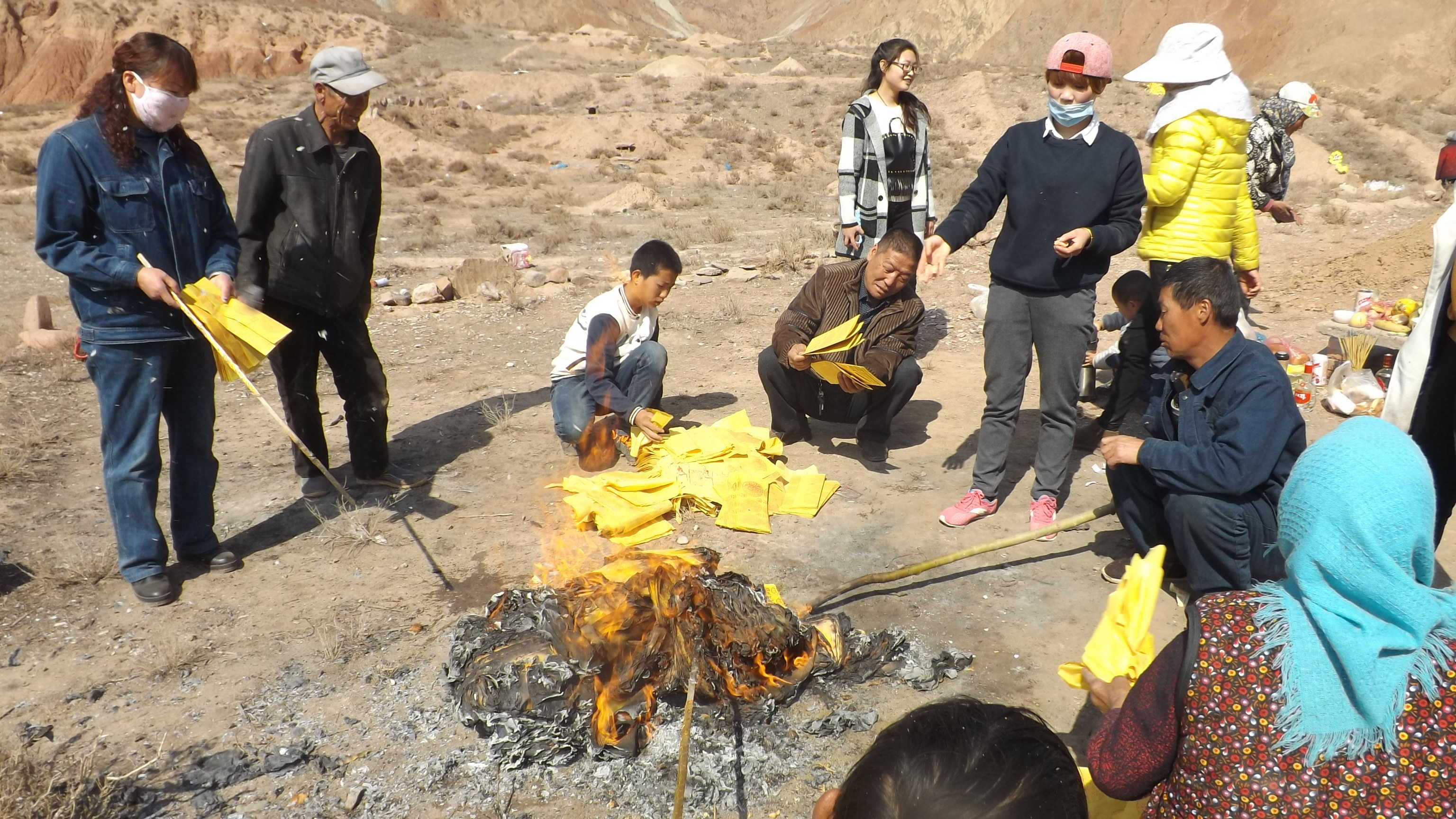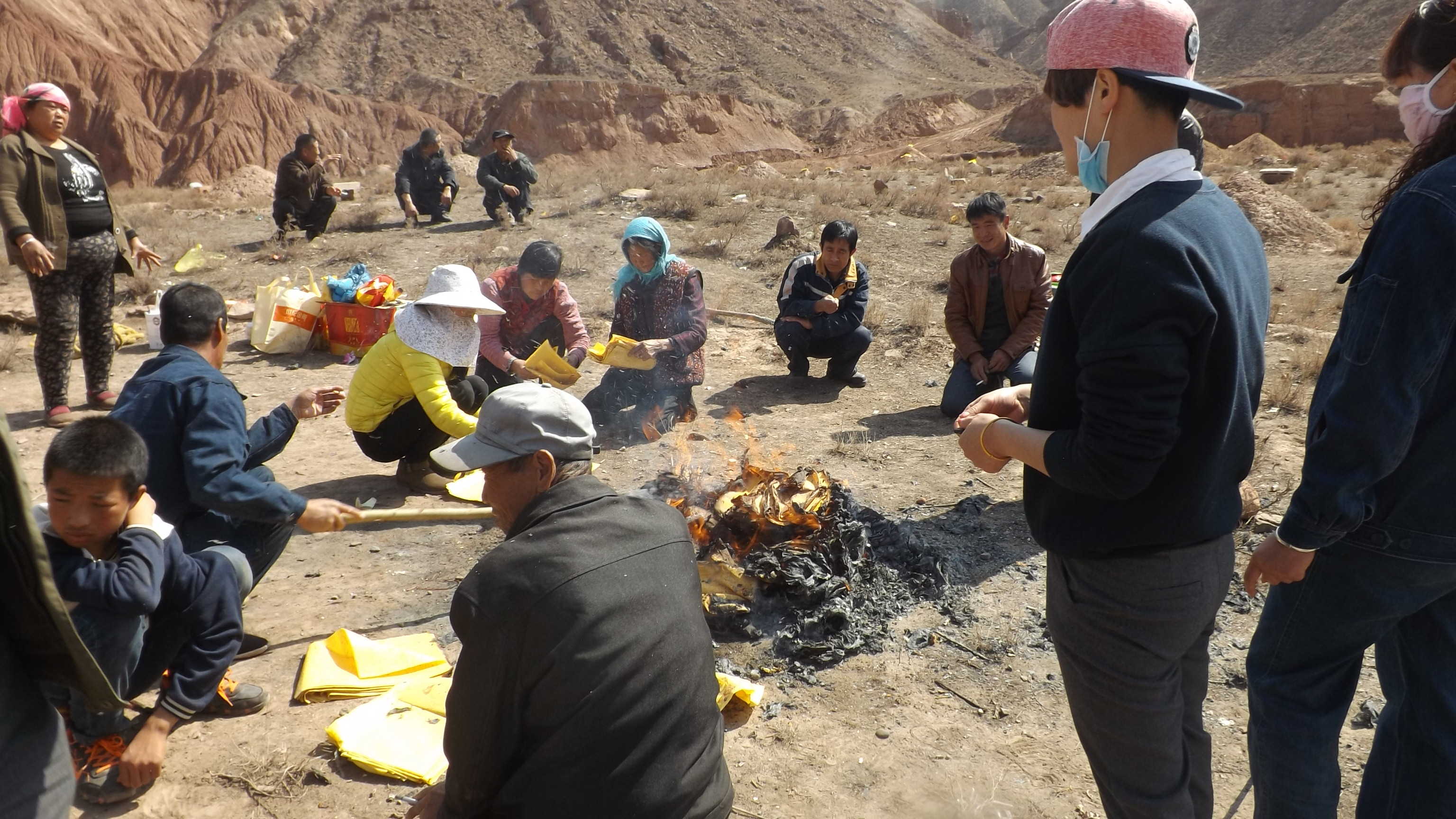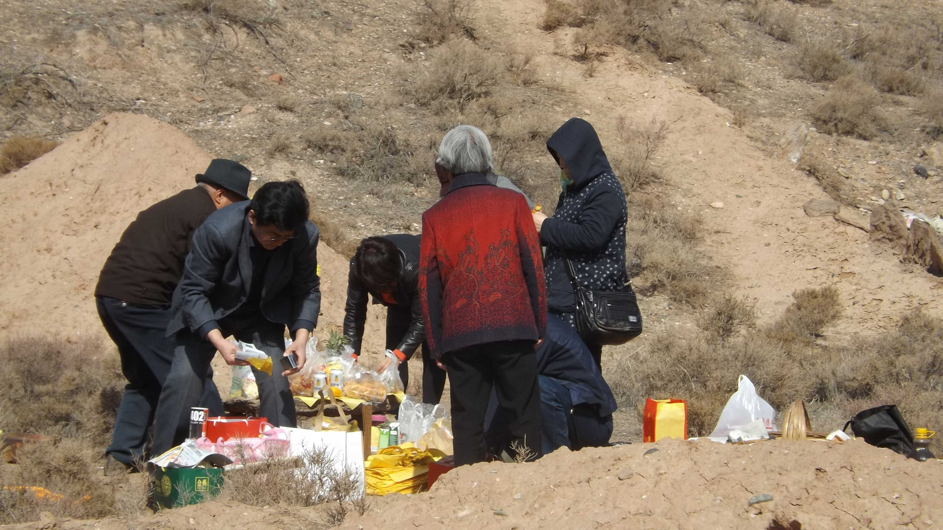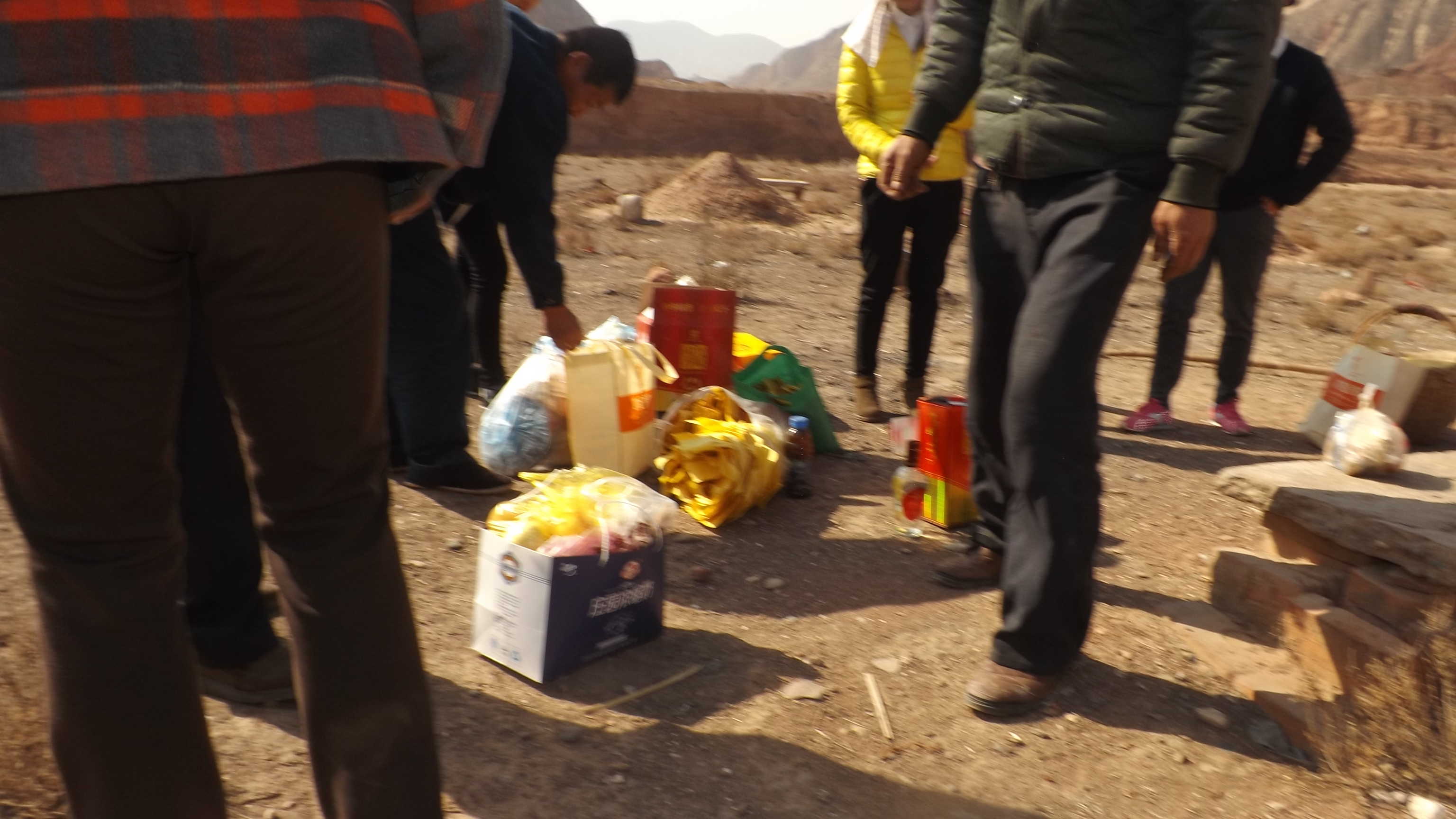 有些家族比较大的每年要宰羊或者是猪,去上坟的当天带上柴火、带上锅还有水,上完坟以后大家分食。
