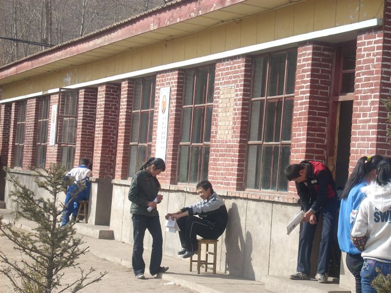 温暖的阳光照耀着大地,还有的同学坐在教室前面晒太阳,一边呼吸新鲜空气,一边和同学聊天。但在教室里却是另一番景象,同学们正在认真的学习。那边他们那几位同学正在认真讨论数学问题,我不忍心打扰他们,还是留下他们并肩的背影吧!