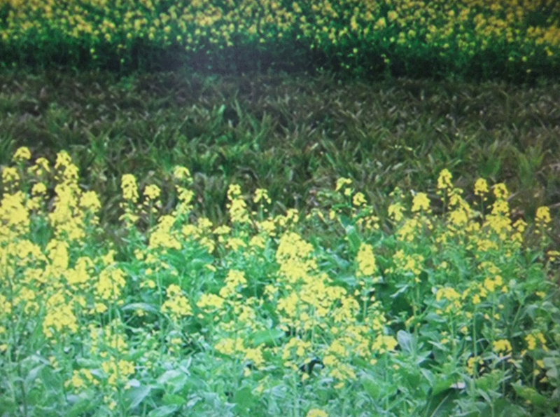 在我的家乡,沿着一条石板铺成的小路,穿过一座山,就看到了一大片的油菜花。