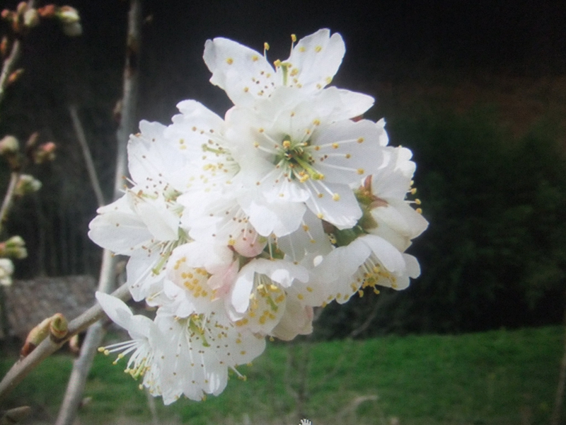 前几天家门前的樱桃树上,粉嘟嘟的樱桃花开了。开始只有几朵,稀稀疏疏的,后来,开得越来越繁茂,好似给樱桃树戴了几朵白里透红的大花冠。