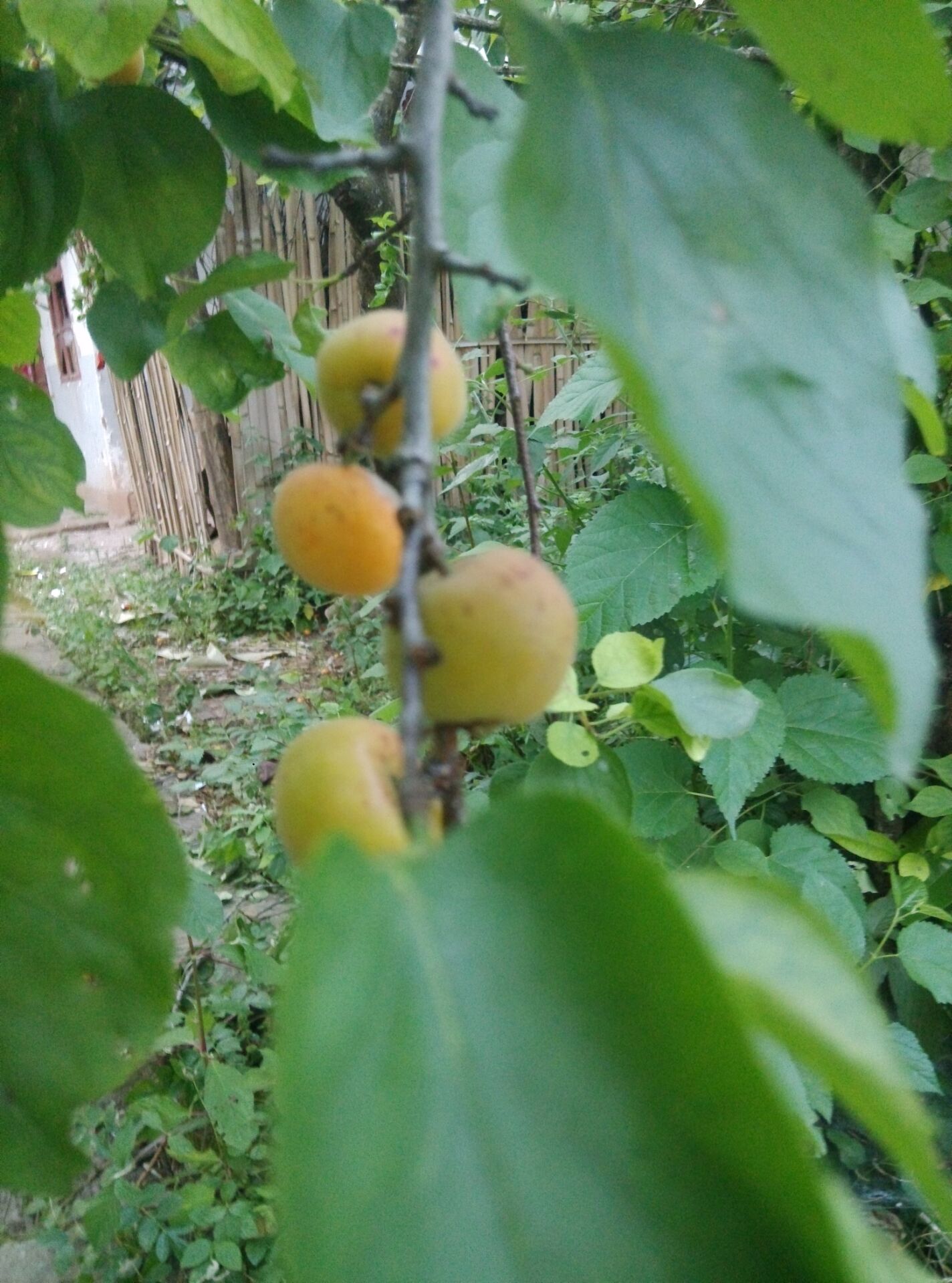 这棵树有很多年的历史了,记得在我小的时候它就在那里那么大,结果现在还是那么大,从来没有变过。以往每年都结的少,今年是结的最多的。这棵树便是我同学家的梅子树,也是唯一能够证明我们"友谊长久"的事物。