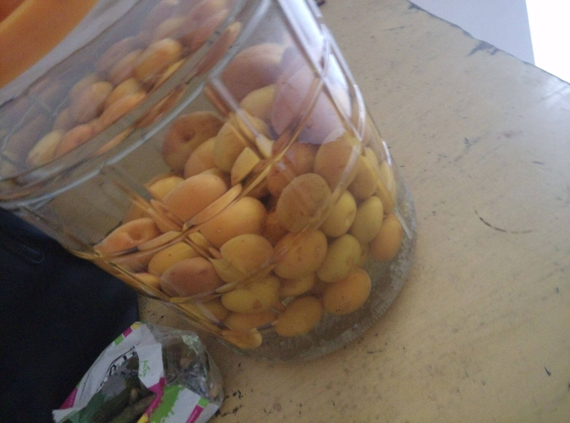 这些天,下的雨是一年四季最温暖的雨,不冷不热。我们把它摘了以后就会把它泡进酒里,做成梅子酒。泡个几个月就可以喝了,这个梅子的汁就全部都在酒里面。它的清香,真的喝起来很可口,尽管我没有喝过,也只是听别人说说。