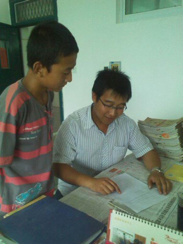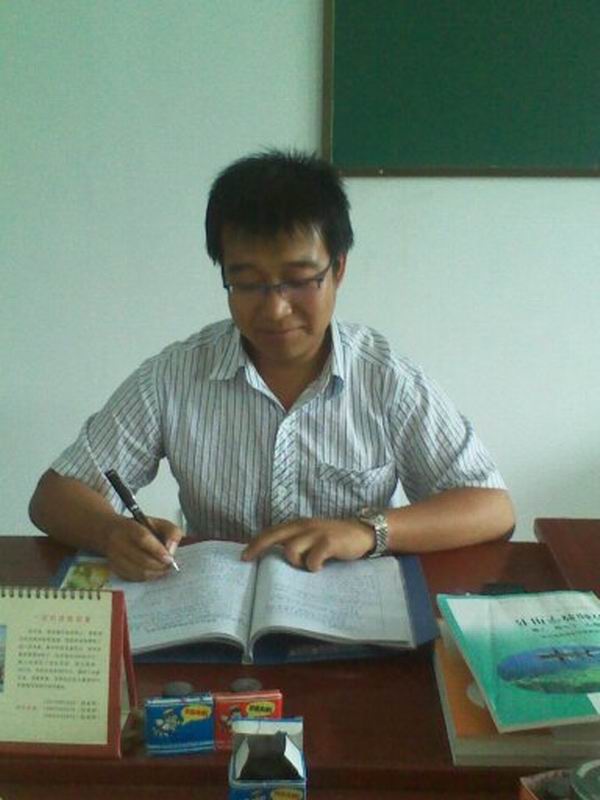 学习委员:你看,我们张老师,整天穿着一套休闲装,看起来特别时尚,别看张老师整天很轻松的样子,但是他做起数学题来,可绝不含糊。从祖冲之到陈景润,甚至阿基米德和华罗庚。他能讲的身临其境。他能和女同学谈论快乐女声,李晟。也能和男同学谈论周杰伦,武侠小说,甚至有时候谈论NBA篮球技术时,跟我们争的眼红脖子粗,有时候,我觉得张老师就是我们的知心朋友。