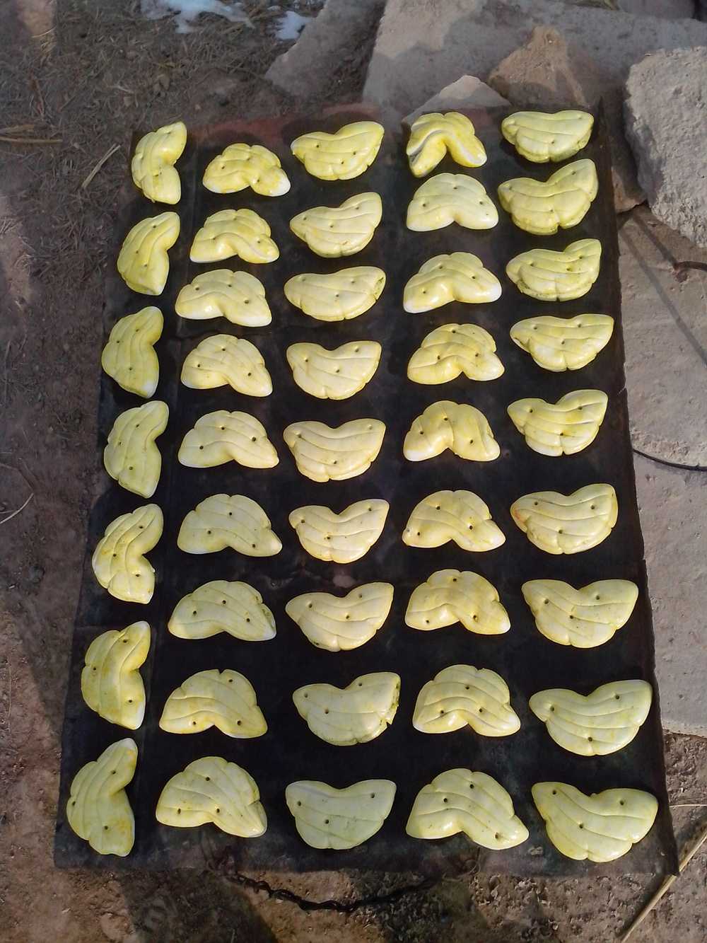 最后一歩了,妈妈把做好的合叶放入屋外烧锅中的烧板上,然后静静地等待那诱人的香气,半个小时过去了,盼望已久的香气渐渐地扑面而来,惹得我口水直流。妈妈瞧见我这副摸样,便告诉我摸摸可以出锅了,我马上就可以享受美味的佳肴了。