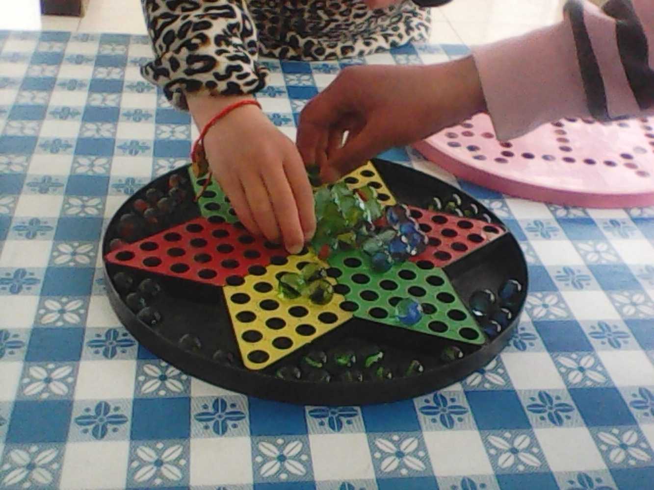 如果谁先把十个玻璃球放成“一”字,谁就赢了,就可以赢得对方的三个玻璃球,然后在转盘上面选择一件事去做。