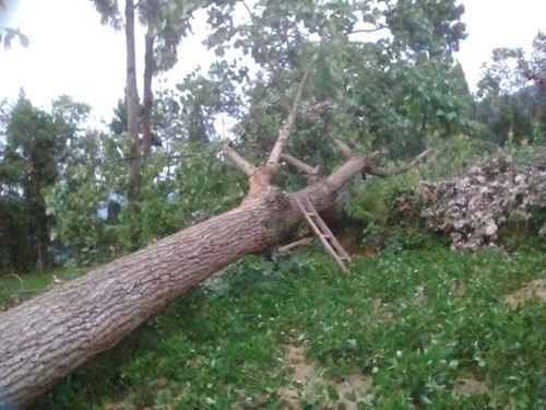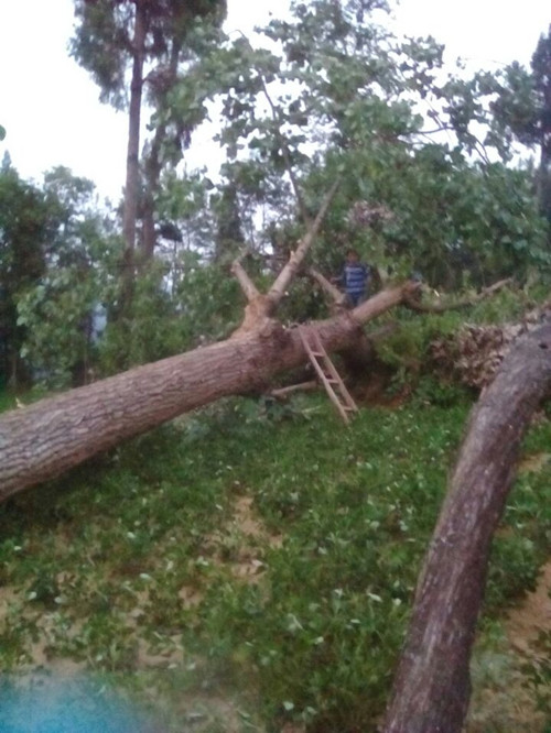 这一场暴风雨肆掠之后,断木到处都是,农民伯伯们辛苦培育的玉米几乎全倒伏在地上,本来只需半个月就快成熟的玉米,却被一场暴风雨给破坏了,你说农民伯伯有多痛心啊。这就是暴风雨的罪证!