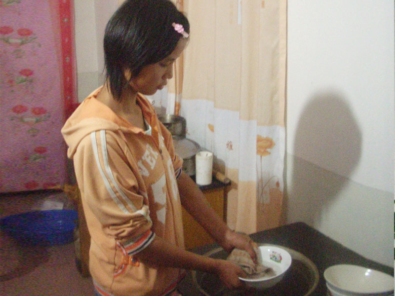 转眼间又十一点了,妈妈正在做饭,我也应该去帮帮忙。我和妈妈一起忙活着把午饭做好,吃过后,我把碗碟收拾到一起,帮妈妈去刷碗。女孩子嘛,就得干刷碗,扫地之类的活。
