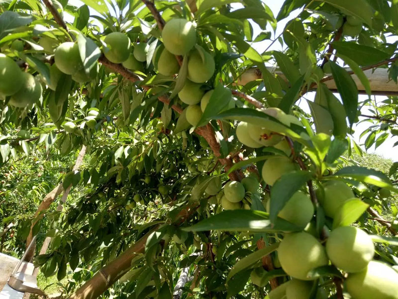 现在正是桃李成熟的季节我们家的桃子、李子已经成熟了,一颗颗晶莹剔透的大李子我在大老处都已经闻到了它的香味。