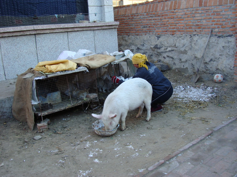 我家前年买了一只小猪,我天天都要给他们吃三次饭,它吃完就舒舒服服的躺在墙角睡大觉。有一次,我把一大堆叶菜和西瓜皮丢了进去,它就慢慢的走了进来,用鼻子闻了闻,然后大口大口的吃着,晚上,我拿着灯去看了看它们,我看见他俩在它们的小房间呼呼的睡着。