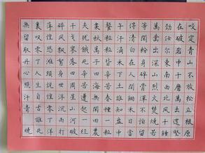 比赛开始了。一开始,我烦躁的写了几个字,写的丑死了。第一场比赛了15分钟,我的心也随着时间的变化,一点点的紧张起来,几乎几次想"临阵脱逃"不过还好我及时调整了心态,静了下来,写出了我平生最漂亮的字!