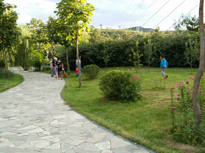 首先,我们到了丁香园,映入眼帘的是大片大片的绿树绿草。有几条岔道,它们分别通往不同的地方,我们登上了一个凉亭,在凉亭里休息了一会。我们走向另一个岔道,路途中有一个假山,我爬上了假山的一块石头上,可以看见远处的人们做什么。我们接着往前走,通往了一个宽敞的凉亭,当时二姨和二姨夫正在不远处的松树林里采蘑菇呢!