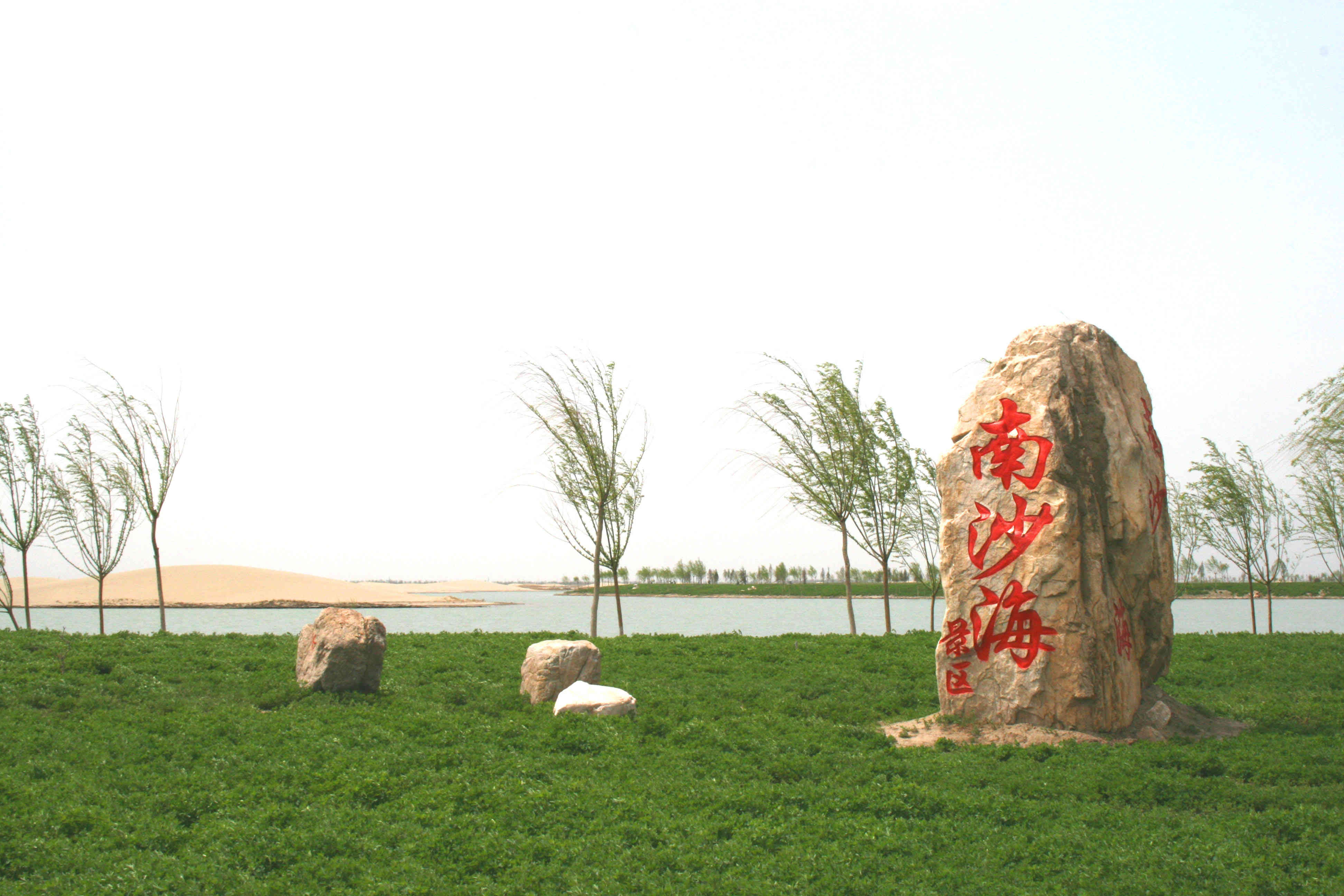 南沙海也不失为一个旅游圣地。有沙,有水,但没有沙湖那么粗旷,有点江南水乡的意境,但又不全是。每个周末,不,应该是每天,都会有很多人到这儿,或是坐在沙丘上,享受阳光的沐浴,或是站在水中,感受不一样的黄土高原。