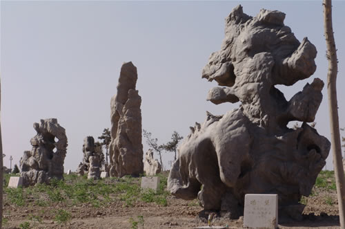 家乡人民在粉煤灰堆厂这个污染源上面覆土1平方千米,再植树种草,修池造亭,就近利用贺兰山原始石头,配以临沂奇石、灵璧奇石、泰山奇石等200余块,其中最珍贵的,要数那块来自挪威的"北极石",这些奇石或高昂挺拔,或玲珑精干,或妩媚多姿,或神秘莫测,有的棱角分明,有的圆润幼滑,有的犹如明镜,有的还似宝刀;但换一个角度,又感觉不一样了,真可谓姿态万千!远近高低的茵茵草地上,奇石荟萃,错落点缀,经过精心的置石造景,使昔日的煤灰山成为情趣盎然的中华奇石山。奇石山上,除姿态各异的几百块奇石,还辟出一个个文化石林园,漫步在石林园区,穿行在雕塑园,名人雕像栩栩如生,让所有来这里的人受到先贤圣哲的鼓舞熏陶。具有象征意义的三十六擎天柱、三十六计碑等正在进行布置。可以想象在数十年后,这些名人雕像掩映在青草翠树间,人们流连其间,看着一个个人物介绍,仿佛在浏览一部部影片。一个集奇石、民族精魂于一体的中华奇石山园景观初具规模。石头是坚硬稳固的象征,中华奇石山园中的巨石碑林不正象征着中华民族坚如磐石的民族精神吗?建成后的中华奇石山每天游人很多,奇石山还真是奇!