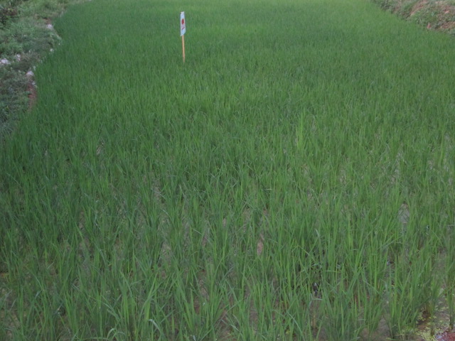 田中的水稻也不示弱,浑身全是绿的在田中唱着歌。虽说没有玉米的高大。但它结出来的大米却是我们每一个人天天不可少的营养物质。在田中竖着一块牌子,上面写着"两优华占、产量1500斤",我们期待着收获的日子。