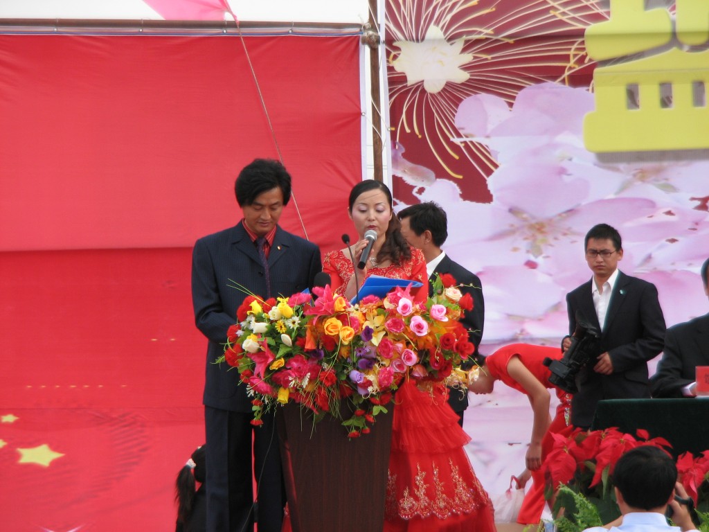 第二项是主持人介绍各位来宾及捐款单位、金额,大家都在享受这一欢庆的日子,摄相的,拍照的,学生们和老师们都坐在主席台下,观看的观众一层一层把会场包得严严实实。由于音箱是从县文化局借来的大功率音箱,效果非常好,女主持人的清脆的声音和男主持人雄厚的声音使在场的所有观众大开眼界。