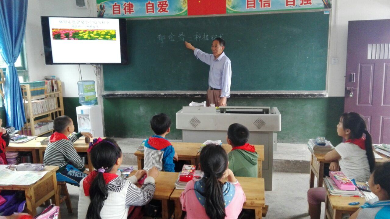 虽然我们都是农村孩子,对一些花花草草也不陌生,可是老师总是聪明的,他们为了"治理"我们这帮"猴孩子",就让我们学习种植,说能锻炼我们的耐心和责任感。 你看,即将要退休的慈祥王老师还专门做了课件教我们怎么种植一蹿红呢!王老师真是太有心了。