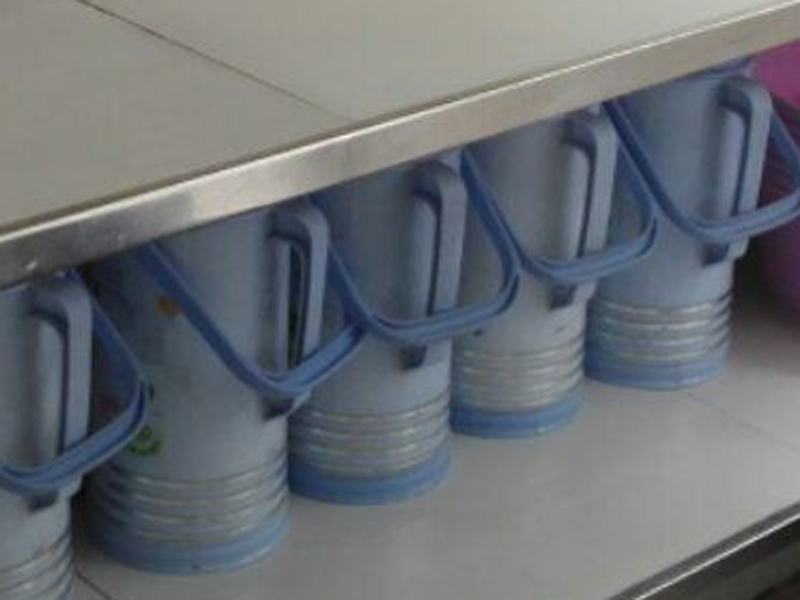 第二层整齐的放着我们每个人的温水瓶,统一的颜色,统一的摆放方式,一尘不染的台面,看起来真是让人赏心悦目吧!