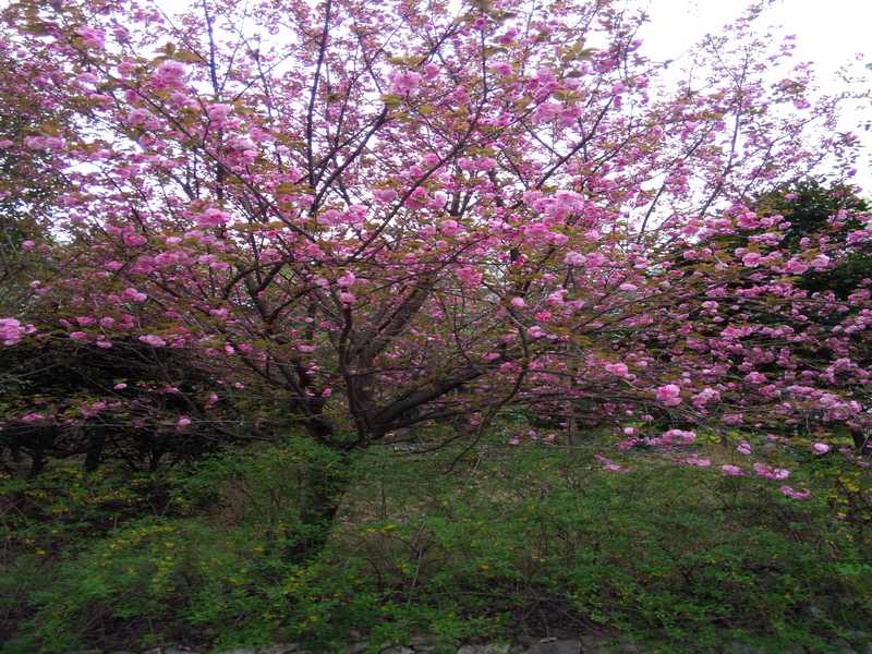 拍完照片,再看看路边的南山植物园,白色的苹果花、红红的木瓜花、粉红的樱花,点缀在绿色的树林中,美丽极了。来到了樱花园,漫步樱花林中,才发现这里其实是花的世界,花的海洋。抬头一看,樱花树伸展着花枝,花朵相互簇拥着,挡住了天空,仿佛一朵朵彩云落在南山上,又给南山披上了一件粉色的纱衣。微风吹来,樱花林里便下起了"雨"。你看,那一棵樱花树开得多热闹呀!只有几个花骨朵含苞欲放,像一位害羞的小姑娘,迟迟不肯抬头。我们在樱花树下的林荫道上跳啊,笑啊,别提有多开心了。