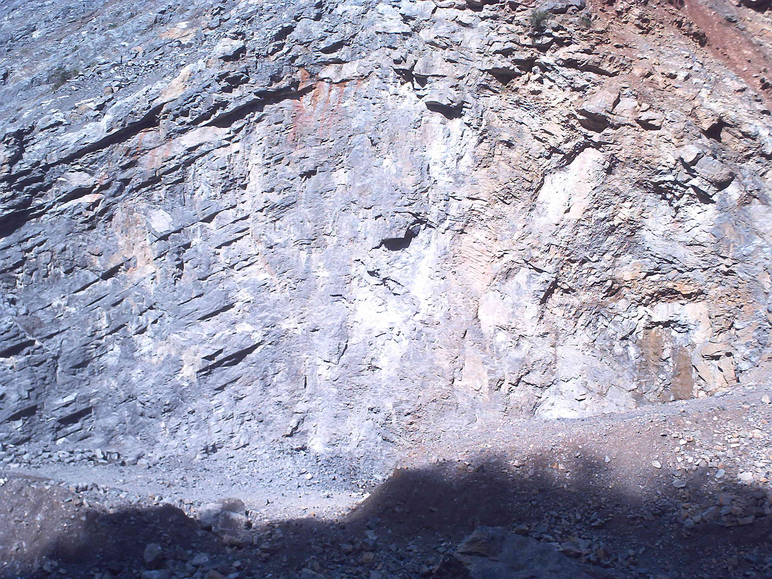 人们正在用空钻机,钻孔,再用炸药爆破,把成块的大石头分解成小型石块,再由工人把这些小石块装上大车,运到加工水泥的厂,经过加工就制成水泥。
