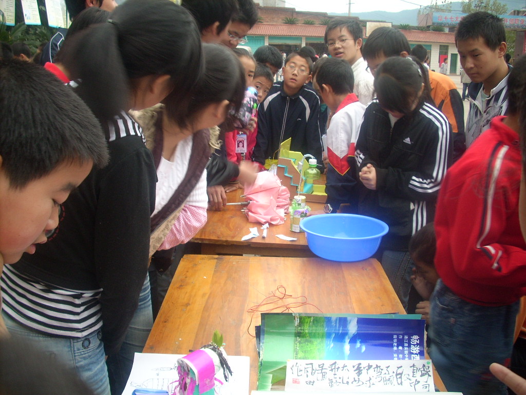 同学们尽情的欣赏着展出的作品,并讨论着一些他们认为优秀的作品,为了鼓励同学们多进行创新制作,学校在展出后还对同学们认为最优秀的作品的创作人给予了奖励。