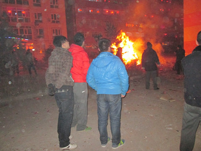 除夕夜是过年中最热闹的时候,家家吃团圆饭,灯火通宵,毫不间断。晚饭后,大家还聚在一起看"春节联欢晚会。"过了12点,爆竹声覆盖全城。这一夜,几乎没有什么人睡觉,都要守岁。