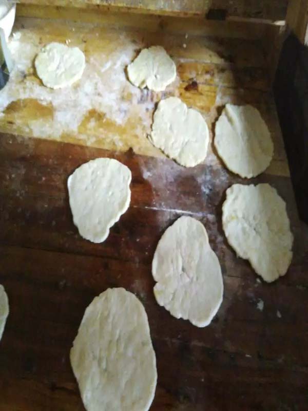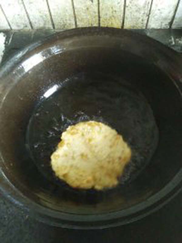 将糯米洗干净放电饭煲后,再把洗干净的红枣放在糯米上面,盖上锅盖,按下开关,第一步就算是完成了。接下来要和面:将面粉放置在一个塑料盆中,再将掺了发酵粉的开水倒入面粉(注意,水要适量,放多了下一个步骤很难完成,放少了影响口感),再用手搅拌、搓揉成一个面团。将面团揉捏为长条状,用菜刀将面团切成直径约为5-7cm长的小面团,再用擀杖将小面团擀成圆饼,完成后再将圆饼放入油锅内炸至金黄后捞出。此时炸出的油饼可以单独吃。