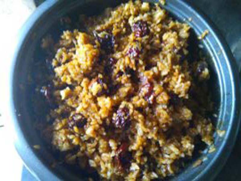 电饭煲里的糯米煮熟后,用筷子将糯米和红枣进行搅拌,搅拌均匀后再放入一定量的红糖,在进行搅拌。将搅拌均匀后的糯米放在炸好的油饼上,油饼卷糕就这样完成啦。