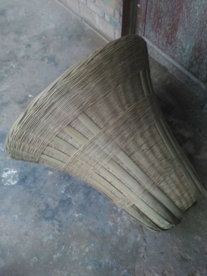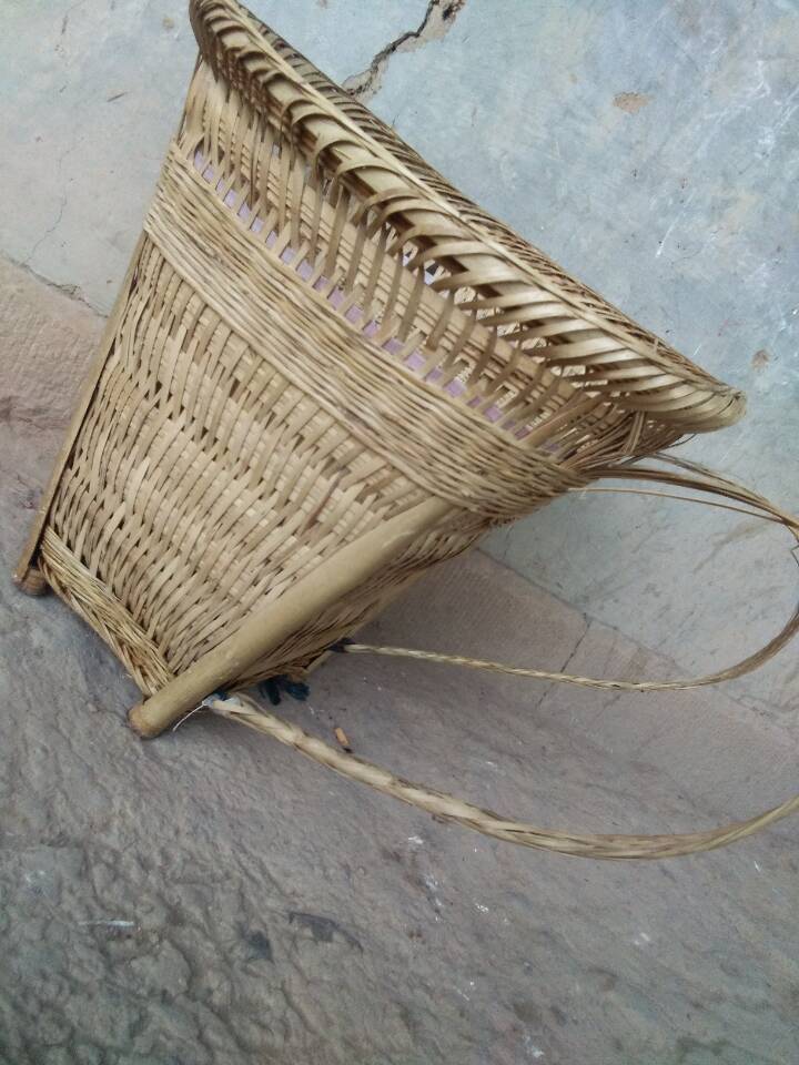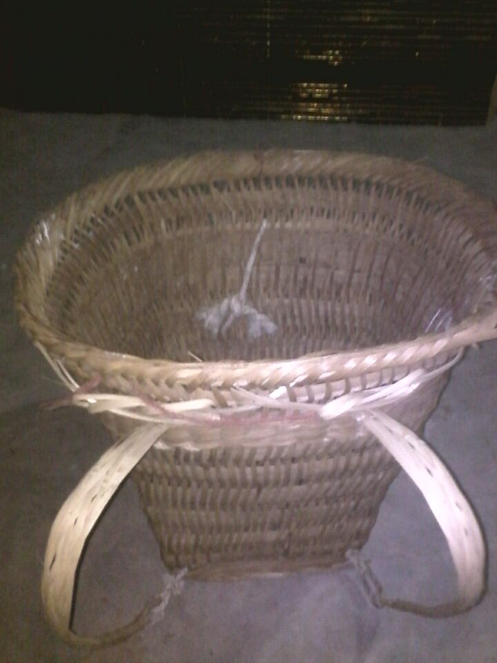 大花篮用食指般宽的篾条编成,空隙也较大,编织者不会将它打造成一位美女,它只是坡上装牛猪草的。内容决定了形式,如果说小花篮是名媛淑女,那大花篮就是粗劣村妇。 背篼的家族十分大,我列举的不过是冰山一角,别人说千万句,不如自己试一试。实践出真知哦!