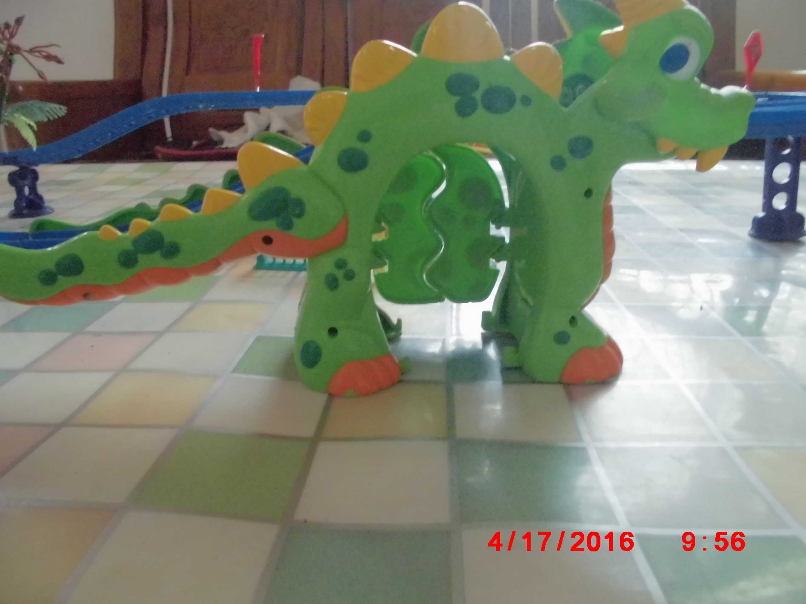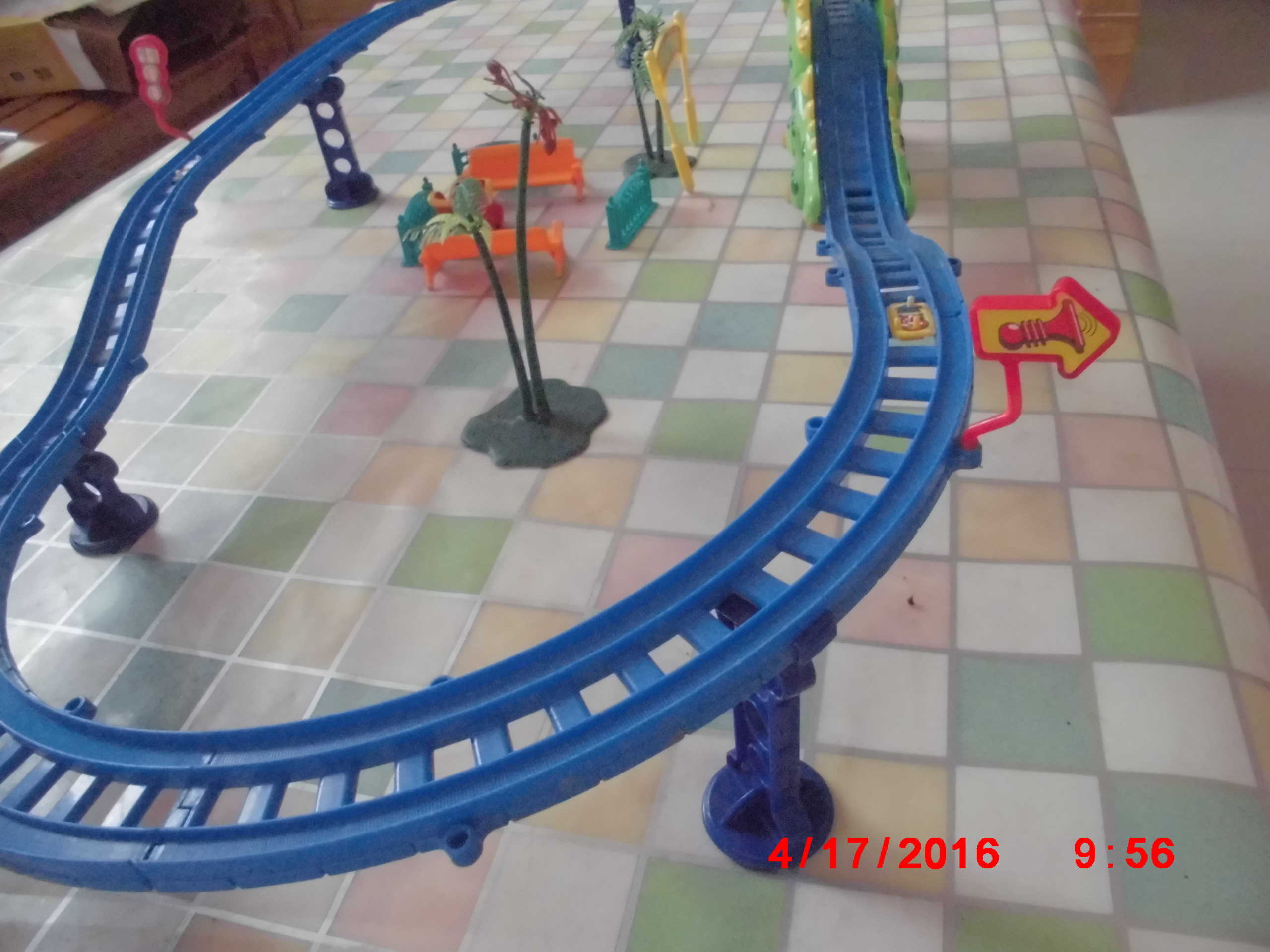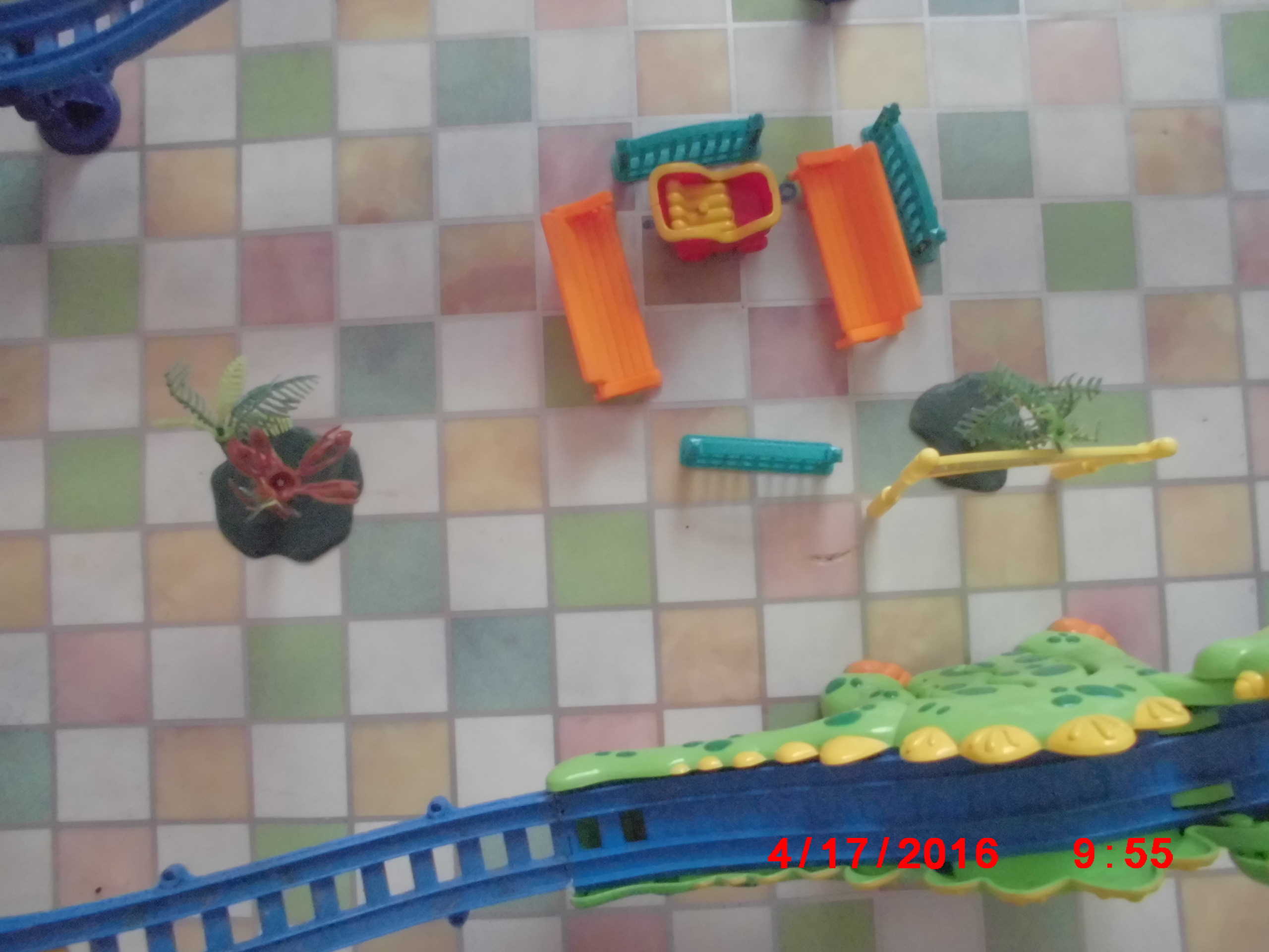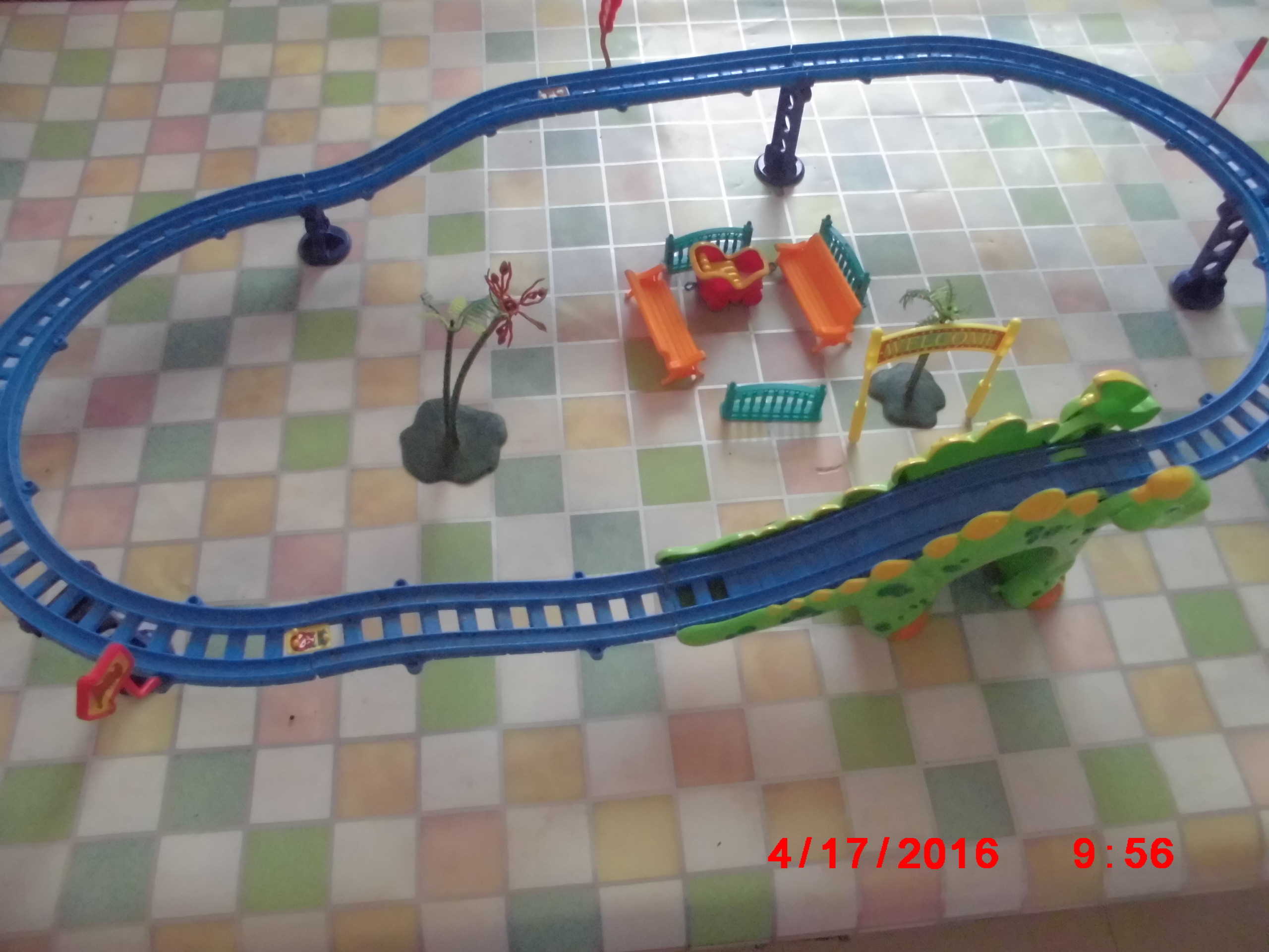 有一天,他回来了,偏要我陪他摆玩具。我只好陪他摆,我们俩一起研究如何来摆,虽然失败了几次,但我们还是能从失败中得到启发,为下一次的成功奠定了基础。我们先把恐龙的位置确定好,然后来摆火车轨道,之后再摆圈子以内的欢乐谷,经过我们的不懈努力,终于完成了这个巨大的工程。