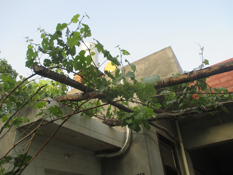 但在我们村,就有一颗葡萄树,它的藤枝爬的非常高,因为那儿没人住,所以有了一颗倒了的树,那葡萄树的藤蔓都爬到了房顶。