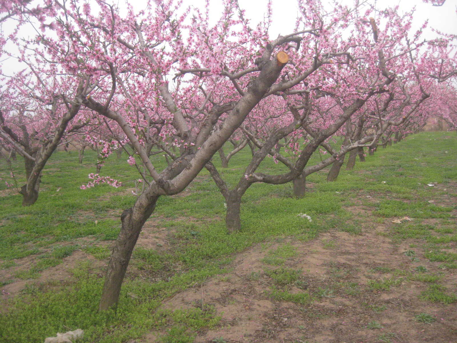 站在坡上,看桃园一片粉海,在空隙之间还依稀可见绿油油的草坪,辽阔的场野令人心情格外愉悦。