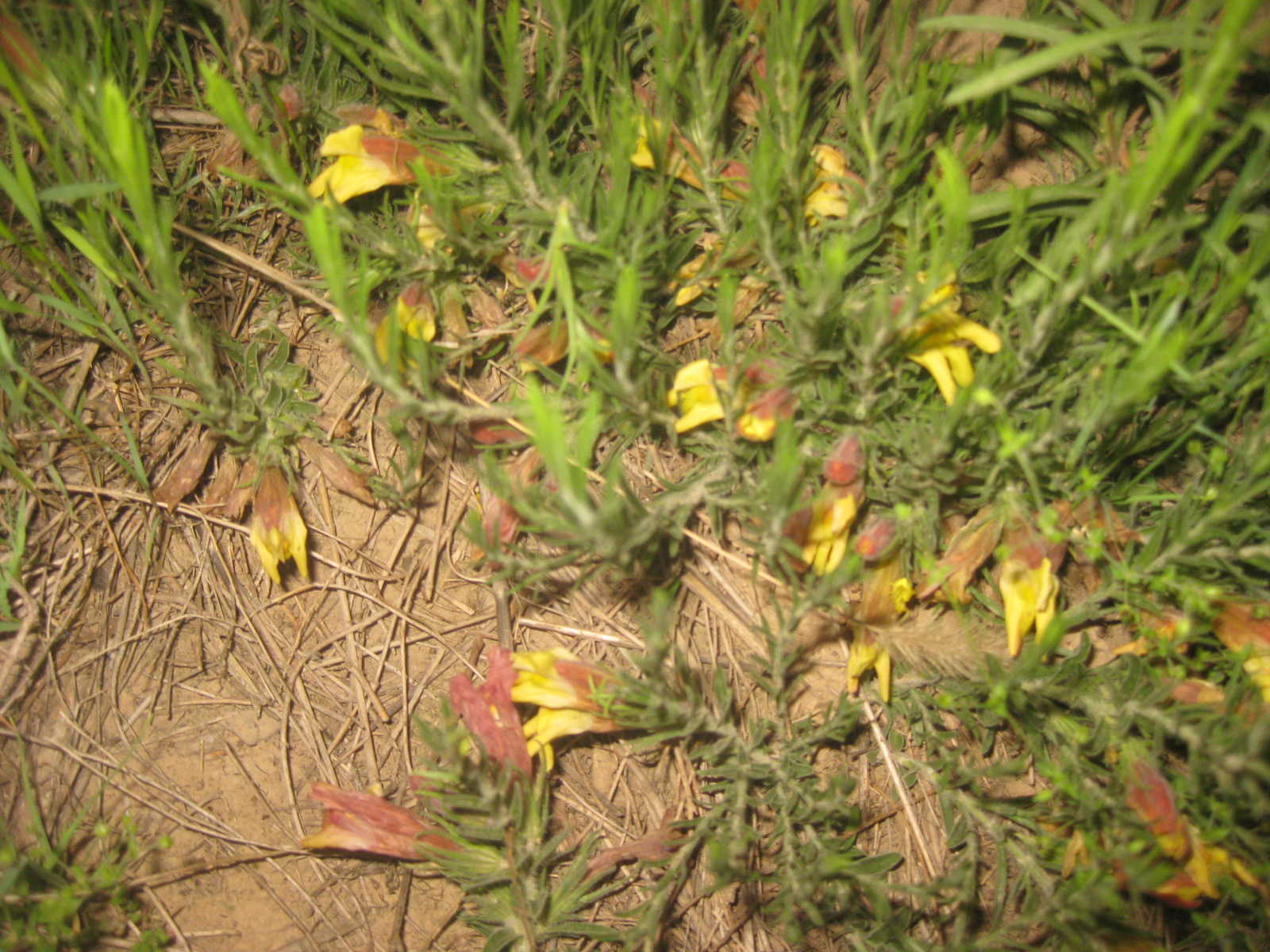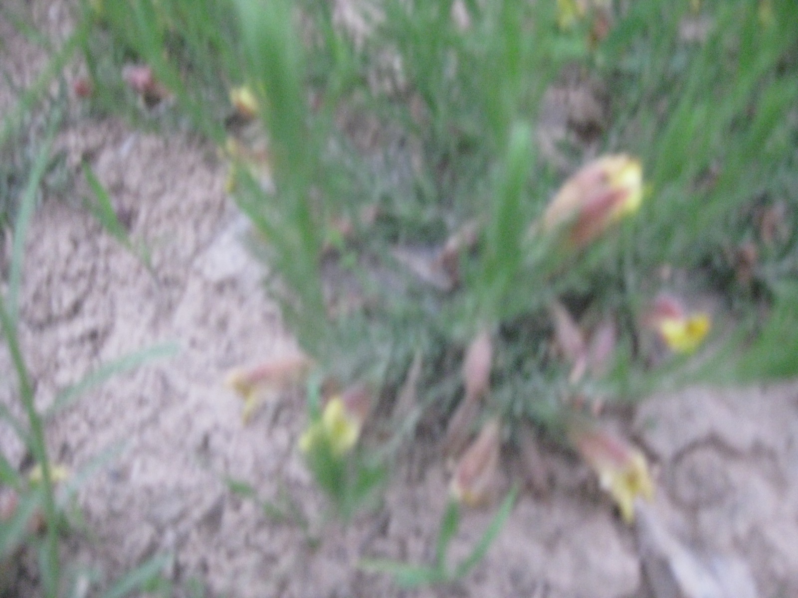 炮仗花,形如一个喇叭号,大口摆向四边,稍上有成红色的色彩。介于小茎的一般是黄色的。这种花的叶子贴着地面像贴着船底的一只只水母。
