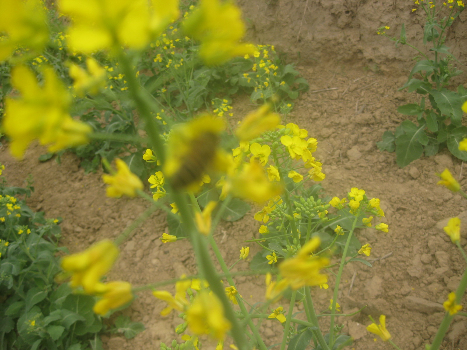 这天,远远的,我便看见一道美丽的黄丝带在风中飘动,似乎为自己而骄傲,翁翁声引起我的注意。我走近瞧了瞧,在这丝带般轻盈的油菜地上,伏着一群贪婪的小蜜蜂,我俯下身来,一只蜜蜂正如胶似渴地钻进花蕊里,任由风怎样摆动花枝,它依旧沉淀在自己的世界里,不可自拔,我蹲下身来,仰望油菜花反在天上,以空奇。