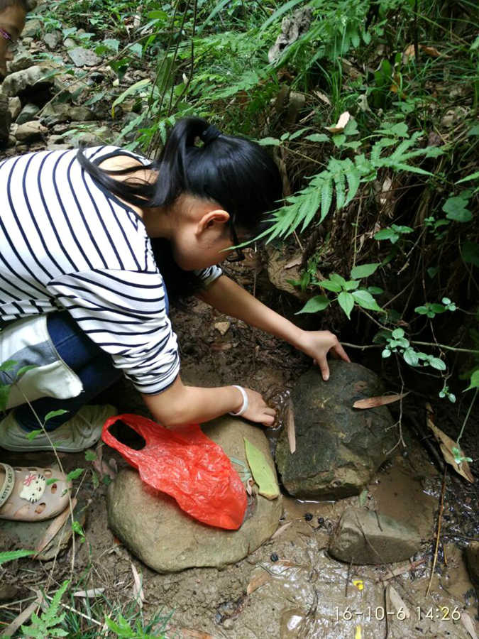 废话不多说,我和妹妹们挽起袖子,就开始翻倒石头找螃蟹了。听表妹们说,这里她们中午就来翻过了,所以应该没剩多少了。不过我是谁啊?我哪管这么多,直接的翻!只见我刚将一块石头给翻了过来,就看见了一只螃蟹从我眼前晃过。哎呦,运气不错嘛!我将螃蟹放到袋子里,这可是我们得到的第一只螃蟹。