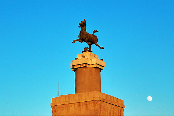 这座历经数年沧桑蜕变的历史文化名城,留下了诸多历史遗迹。其中海藏寺和雷台汉墓颇负盛名。特别是在雷台汉墓出土的"马踏飞燕"。这件稀世珍宝,自出土以后,很快驰名中外,被定为中国旅游标志。那匹马一蹄踩鸟,三组腾空,雄姿勃发,曾被誉为"力学与美学相统一,理想与现实相融合"的艺术瑰宝。这足以证明当时劳动人民多么具有艺术想象力和非凡的创造才能啊!铜奔马屹立在文化广场上空,它举目眺望前方,好像马上就要"腾飞"!