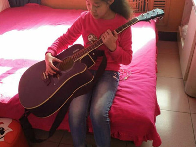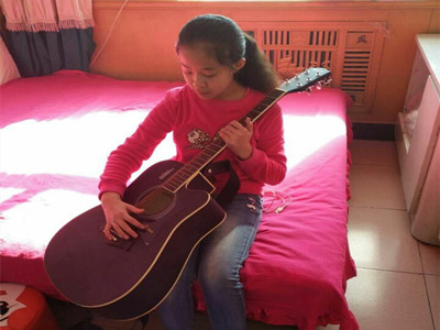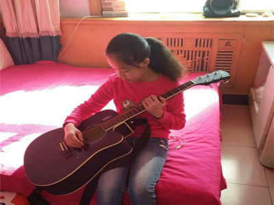 老师最先教了我一些基本知识,使我可以弹出音来。比如要弹"Do",就要把手指按在二弦的一品上。比如要弹"Re",就要把手指按在二弦的三品上。我跃跃欲试。老师见了,就把吉他递给我,让我从"Do"弹到"Si"。我心想:这么简单的事,我一定可以完成。于是,我弹出了"Do",弦只是轻微动了动,发出了一些难听的声音,就不动了。我看了看自己的右手。按在二弦的一品,没错呀!我疑惑地看了看老师。老师说:"手指要按紧,用力按才会响同时你右手拨的时候也要稍微用力一点,才会更好听。"我连忙用力按紧,然后拨弦。一道清脆的声音从吉他里发出。这声音可比我第一次弹出的声音好听了不少,可伴随的,却是一阵钻心的疼痛。我的手指印出了一道深深的印子,旁边的肉被挤得通红,整个手指看上去好像是被切了一刀似的。凹陷下去的肉慢慢地恢复着,疼痛感也随之消散,我拿起手来,仔细端详着我的手指。等它和弹之前差不多了,我又弹了一个音,这次的疼痛感更加明显了,我差点叫出声来。